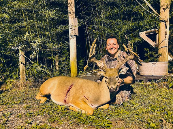 “I started shaking as the deer approached,” he says. “But when the buck got to 30 yards and turned broadside, I aimed and made the shot with my crossbow. It was perfect, going right behind his shoulder, passing through both lungs. I watched him run about 65 yards, then he cartwheeled and fell. Somehow, he got up and ran again before falling for good about 20 yards farther in the field.”