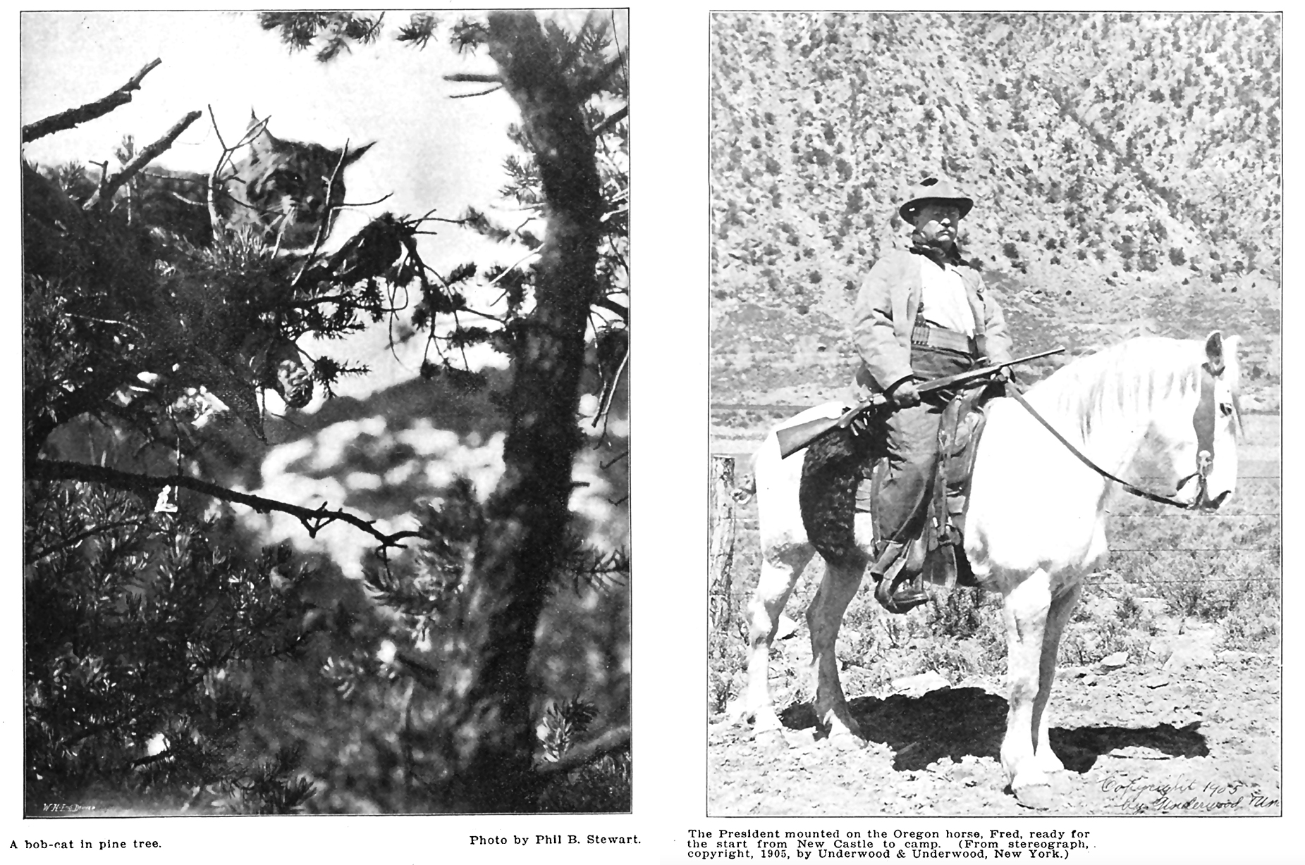 When this hunt was first planned, I was asked about the possibilities—that is, the number it was thought could be secured in the time which the President had at his command. This was to me a hard proposition, for while I knew about how many there were in a given space of country over in my section—north of Meeker between the Bear and the White rivers, close to where the President had hunted lions with me on his first trip—yet I disliked very much to commit myself as to how many we could promise him in that territory. Mr. Borah was then asked the same question, as to how many he thought his territory (south of the Grand river) would yield in case the hunt should be held there. Mr. Borah gave an estimate, which was satisfactory to the President and to Mr. Stewart, but even his seemingly conservative estimate was in excess of the number secured. It was not due, however, to any over-rating which Mr. Borah had placed on the outcome, but more particularly to the bad weather conditions prevailing during the trip. Mr. Borah’s territory was therefore chosen in preference to mine.