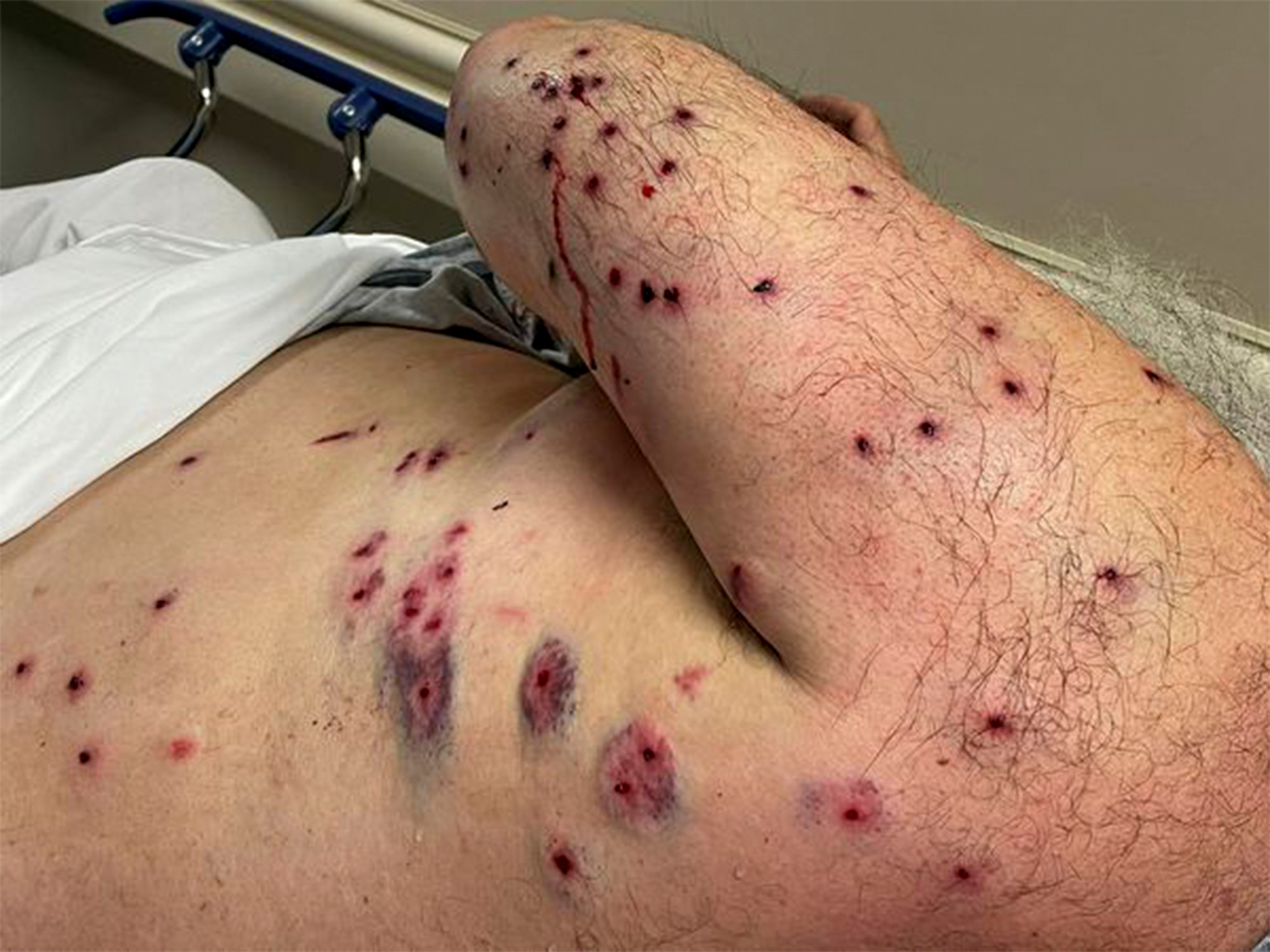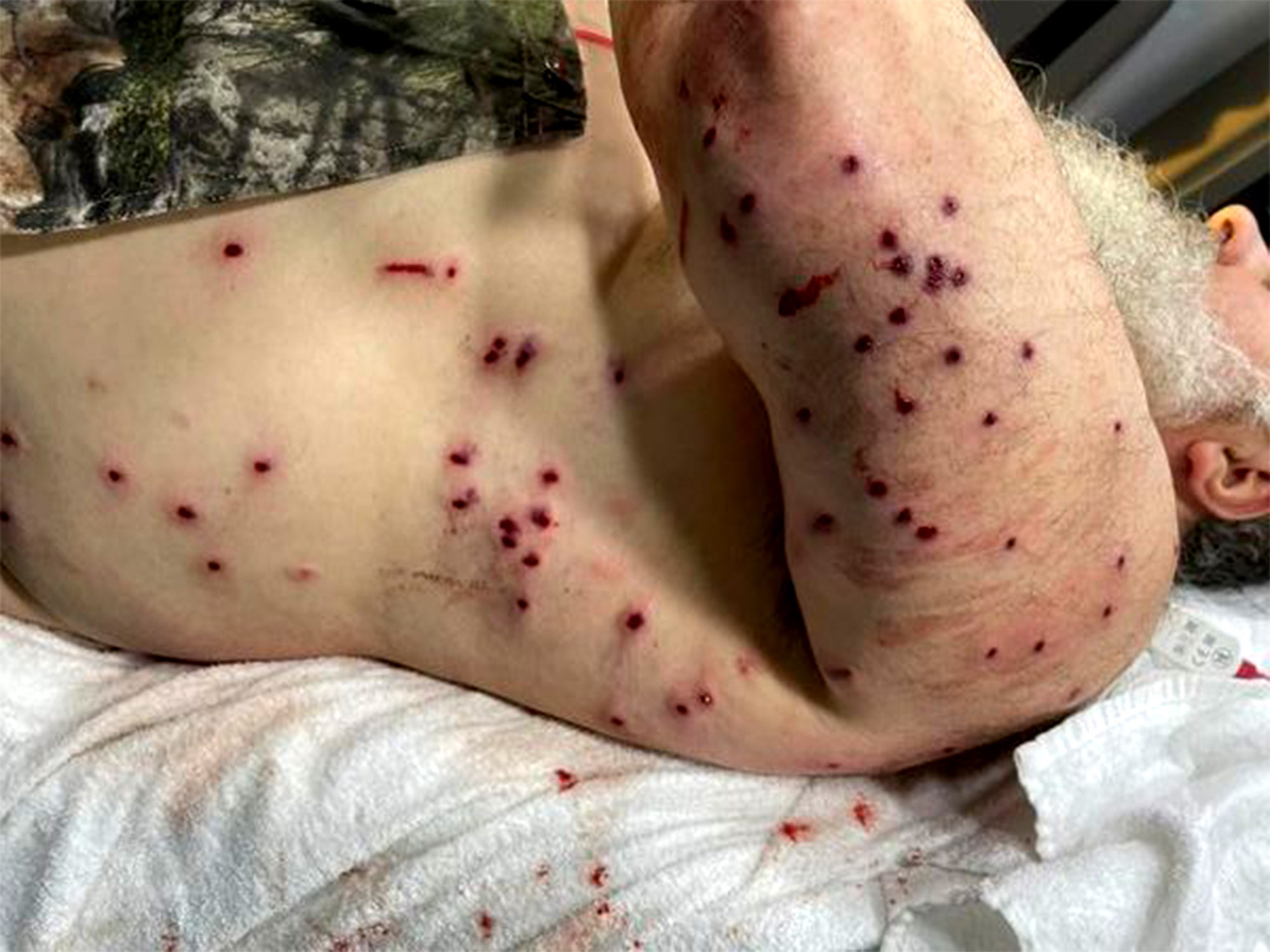 Less than an hour after the incident, Bunn was at the hospital in Kenansville, North Carolina, where medical staff dug approximately 30 pellets out of his left side and arm. A week later a hunting buddy and surgeon took out another 19 after his arm had blackened substantially.