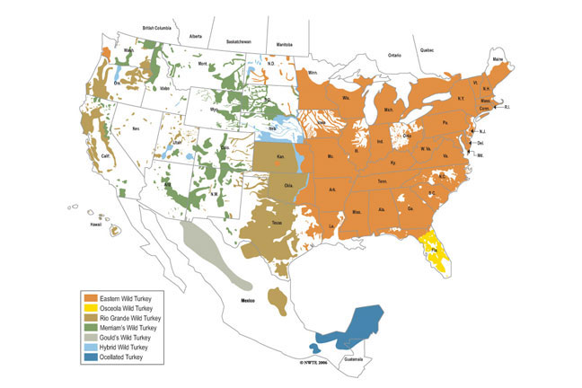 All five subspecies of wild turkeys in North America eat this diet. The specific contents of their diet varies significantly by region, however, and the best way to understand what turkeys are eating in your area is to inspect the crop of a harvested bird.