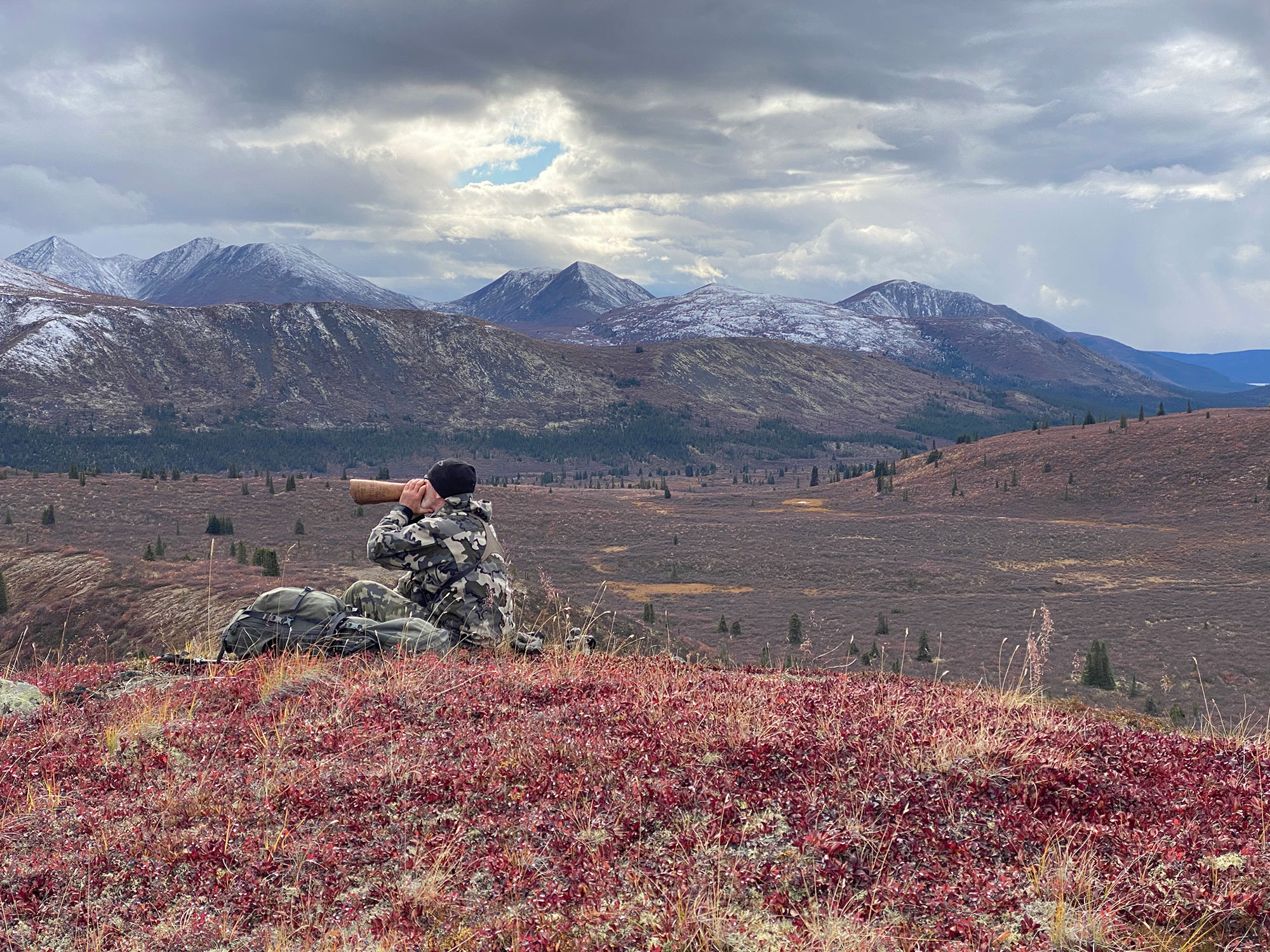 My expectations are matched by the activity of bulls during our daylong ride to camp. Long into our ride, we spot a wide bull in a distant patch of dwarf birch. I try to assess it through my binoculars as Rascal heaves and shifts his weight.