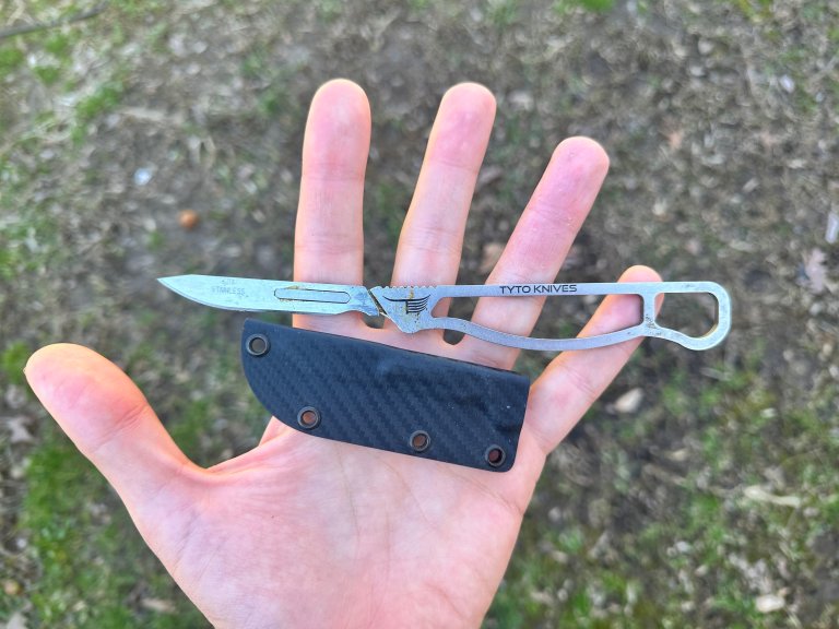 The Tyto Hollow Bone is by far the lightest knife I’ve ever tested. I like that Tyto managed to drop this knife’s weight without sacrificing the things that matter like ergonomics and a quality blade. Your typical size 60 blade is thin from edge to spine, and I’ve had several break while using them to quarter an animal. The Hollow Bone blades are wider and more robust so they won’t be as delicate. Replacing blades on the Hollow Bone isn’t as easy as the Outdoor Edge Razor Pro L, but that’s the trade off for a knife that weighs less than a pencil.