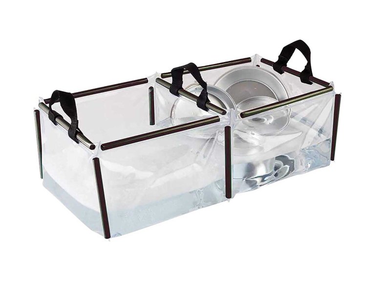 See ItI’m not a fan of doing dishes, especially camp dishes. In fact, the last few years, I’ve dined by the campfire almost exclusively with paper plates and plastic cutlery. But I also know there are those that insist on stainless steel or enameled plates, bowls, and mugs. If you’re one of those campers, then you’ll need an easy way to clean them up after a meal. The Coleman Folding Wash Basin is an excellent solution because it’s compresses to a slim, easy-to-store briefcase. Unfolded, there are two 10×10 inch basins—one for washing and one for rinsing—separated by a rigid plastic divider, and three carry handles make it easy to handle, even when filled with water.