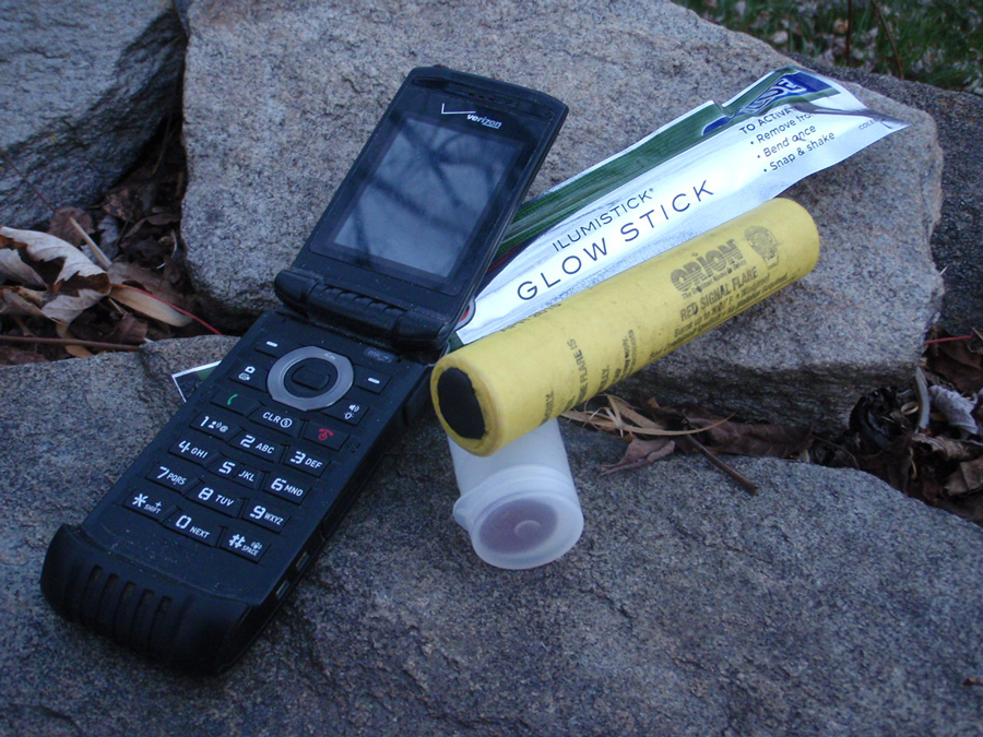 A flare can provide a reasonably bright light for signaling, and it also makes a great back-up fire starter. To give your flare some more reach, duct tape it to a pole or branch and wave it around in the air. Duct tape only the end of the flare, so you’ll have more time before the flare ignites the duct tape. Just make sure you don’t wave the flare directly overhead, in case it comes loose unexpectedly. My favorite flare is the Orion SAR Signal Flare/Fire Starter, which costs about $10 for a pack of two flares. Each flare burns approximately five minutes at well over 2,000 degrees Fahrenheit.