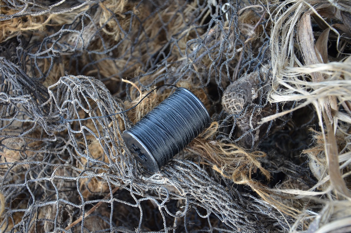 The thread you keep for tying on additional material can also come to your rescue for repairs. Use square knots and good, solid lashings to rejoin cut or torn sections of the net, or to join two nets together for larger camo panels.