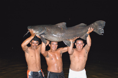 The scales of the pirarucu are so abrasive, they're sold as nail files in the curio shops of Manaus, Brazil. That gives you some idea about this prehistoric fish, known as arapaima in Guyana. Without the head or tail, its body resembles a tarpon's. Reattach those missing parts and you've got something that looks more like an attack sub. The fish favors deep lagoons and sluggish backwaters, where it has the disconcerting habit of rising ghostlike near your boat to gulp air through its primitive lung. Normally the pirarucu is quite wary, but when it's guarding a spawning site, it might leap clear of the water and too close to your boat for comfort. It will do the same once it attacks a big jerkbait, crankbait or slab spoon, though more typically it rolls wildly on top and then heads for flooded jungle trees. If you're trophy hunting, a live or dead baitfish beneath a float is often most productive. The key to finding this fish is to search for air bubbles. Air breathing has been the fish's un-doing. Specimens to 600 pounds reportedly have been taken in the past, but spearing has reduced their numbers. Today 200-pounders are trophies; a 100-pound fish is a good-size catch and will put up a good fight to boot. Their awesome ferocity and the sheer adventure of a deep jungle hunt for the critters make them that much more worthwhile.