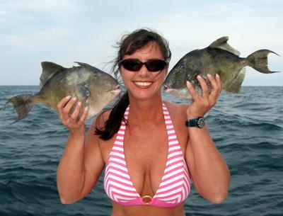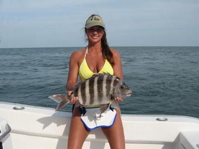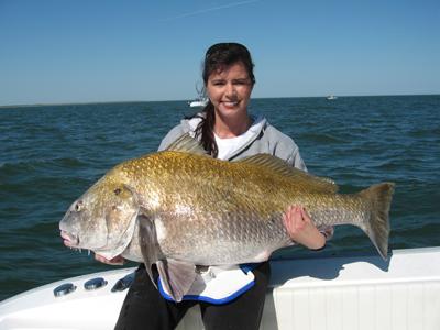 I had a few days off and the weather was just gorgeous along the Virginia coast. As my buddy, Ben, and I worked our way toward the third island near Virginia's Bay Bridge Tunnel, we swung in to search for some black drum. I asked some nearby anglers if they minded if a made a few casts in their vicinity. Ben handed me his little spinner with one of my 5-inch swimming plastics tied on, and I tossed it at one of the schools of fish. Hooked up! Outdoor Life Online EditorI battled the fish for about 10 minutes, and we drew a crowd of boats looking on. Ben expertly guided me after the black, which took both of us to pull into the boat. It was hooked in the mouth- cool. We took a few pics and revived the fish. Outdoor Life Online EditorThat's about when we realized that we were completely slimed- that was one exceptionally slimy fish! So, we proceeded to hose off. No big deal, but Ben decided to get creative with the camera and photographed the "shower scene." Hmmm, interesting. Outdoor Life Online EditorJust then, Ben noticed our drum floating belly up. Let's go! Ben donned his snorkeling gear, and jumped in! Outdoor Life Online EditorI followed Ben around the third island with the boat as he guided the black until he was good to go. Outdoor Life Online EditorSaturday, my buddy Capt Steve Wray gave me some gouge that he caught his limit of nice 7- to 8-pound spades at a nearshore wreck the day before. I smelled a record, and with the sporadic spade action this year, I wasted no time. Outdoor Life Online EditorBefore coming in, I couldn't resist dropping a live bait on the wreck to see if anyone was home. I pulled up a big flounder, and into the box he went. Outdoor Life Online EditorBack at the local IGFA weigh station, Long Bay Pointe, only one of the six fish made the mark, whew! Outdoor Life Online EditorI am submitting the paper work to the IGFA as a pending 4lb Line Class World Record. The fish tipped the scales at 7-pounds, 6 ounces. To see other images of Julie in action, click HERE Outdoor Life Online EditorBall with a 50-inch redfish taken in July 2004 aboard the Spoiled Rotten. Outdoor Life Online EditorAmberjack are infamous battlers and can wear out even the most hardened anglers. Outdoor Life Online EditorWhen Virginia's offshore yellowfin bite catches fire, you can bet that Dr. Ball will be there to get in on the action. Outdoor Life Online EditorAn ace of spade(fish), Dr. Ball heft another Citation entry. Outdoor Life Online EditorIn mid-May, Ball headed for the Eastern Shore shoals and got on a big time drum roll-both red and black drum to be precise. This stud black drum tipped the scales at 72 pounds and was released. Outdoor Life Online EditorNext up was Julie's awesome 48-inch redfish. Outdoor Life Online EditorWho says that flounder fishing is boring? This huge Citation doormat topped out at 11 pounds. Outdoor Life Online EditorWhile you were enjoying your Memorial Day barbecue, Julie was deep-dropping for blueline tilefish. The two biggest fish went better than 17 pounds. Outdoor Life Online EditorAnother Citation tilefish comes alongside. Outdoor Life Online EditorJulie looks none the worse for wear after her tilefish deep-drop considering it sometimes takes baits two full minutes to hit bottom. Outdoor Life Online EditorNot too many anglers scoff at sheepshead when they come up this big. Outdoor Life Online EditorWhat can be better than catching a few Citation-worthy spadefish? Doing so with your mom! Outdoor Life Online EditorProud anglers with a couple of smoker kings. Outdoor Life Online EditorJulie with an armful of king mackerel. Outdoor Life Online EditorBall making short work of an amberjack. To see Dr. Julie Ball's weekly fishing reports and more visit: drjball.com Outdoor Life Online EditorEveryone caught seabass, and Joshua was especially proud of his catch. He'll be a great angler someday! Outdoor Life Online EditorWith a week of easterly winds, the water along the Virginia Beach Ocean front were finally a pristine emerald green color. This is what I call "king mackerel" water! So we grabbed my kingfishing rods, and headed out of the Virginia Beach Fishing Center in Rudee Inlet, and took a right to head south along the beach. After chasing off a few pesky sharks, including a baby hammerhead, my bunker baits were swimming perfectly. All of a sudden, I saw the rod tip bounce. I ran to pick up the rod just in time to see the fish drop the bait. I dropped the bait back, and twitched it a little. He then he came back and slammed it! Fish on! Outdoor Life Online EditorThe fish skied clear out of the water, and I could see it was a nice cobia. We chased the fish for about 20 minutes as I fought the fish on light king rigs. The cobia was released at 50.5 inches for a Virginia state citation. Outdoor Life Online EditorI had plenty of pretty live bait for flounder, so we decided to hit some of the local hangs for some flatfish. I managed some decent fish for the freezer. Outdoor Life Online EditorThe following day was a short one, so we again tried our luck for flounder. We found some small flounder and a surprise, when hefty triggerfish ate live bait 4-times larger than their mouths! Outdoor Life Online EditorWhat a beauty! Outdoor Life Online EditorJulie Ball continued her assault on the IGFA record book by picking up a fly rod and targeting spadefish in her home waters of Virginia. Outdoor Life Online EditorThough they may resemble angel fish, spadefish are anything but angelic. These tough battlers provide great sport on light tackle. Outdoor Life Online EditorBall hooks up with a spade that fell for a yellow fly. Outdoor Life Online EditorA rather slow fishing day last weekend was topped off with a fat sheepshead caught near the Cheseapeake Bay Bridge Tunnel. Outdoor Life Online EditorThis roe-laden sheepshead tipped the scales at 10 pounds and was released. Outdoor Life Online EditorWe headed out of the Virginia Beach Fishing Center, Virginia Beach looking for t