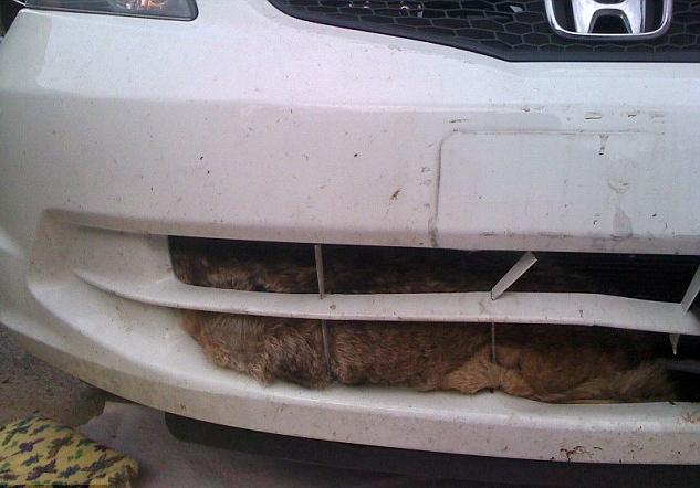 Love ’em or hate ’em (and we basically don’t like them even a little bit), you’ve got to appreciate this coyote’s tenacity for survival.