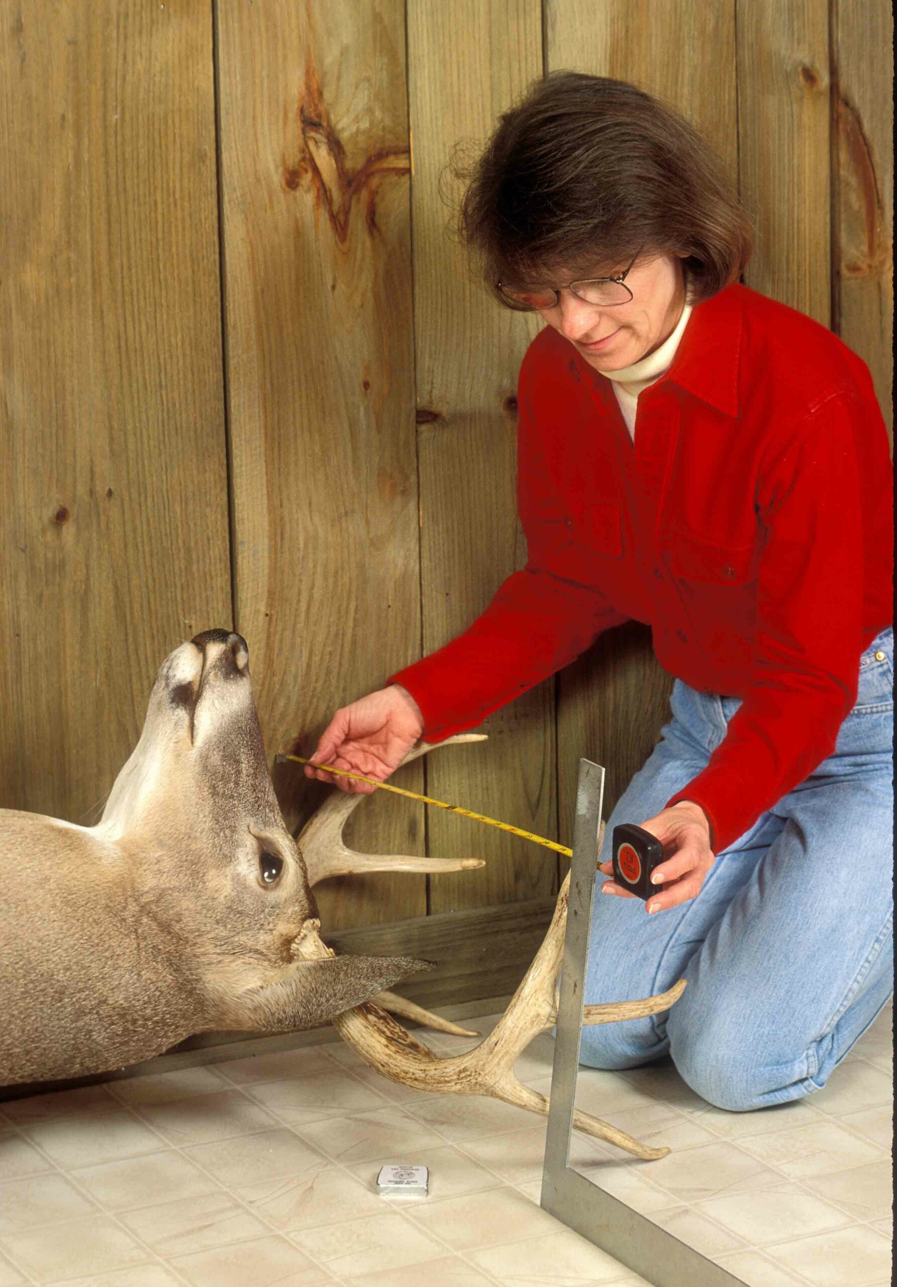 A telescoping radio antenna is perfect for determining the greatest inside spread of the rack. Keep the antenna at a right angle to the centerline of the deer's skull.