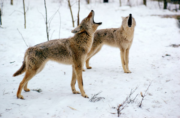 Howling is a common behavior now, and a boisterous pair can sound like a dozen coyotes to the uninitiated. Females search out likely dens, excavating new ones or enlarging those of smaller animals. Females are also eating more, preparing their bodies for pregnancy.