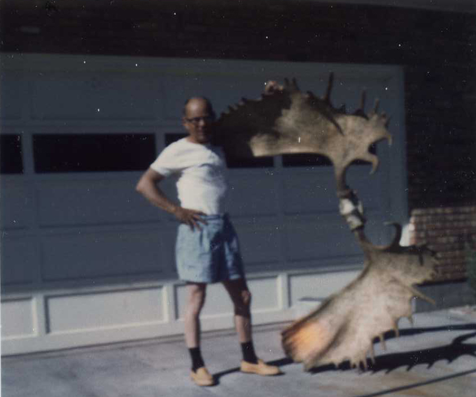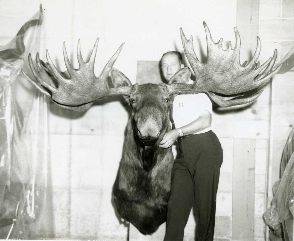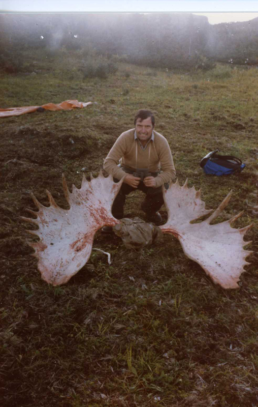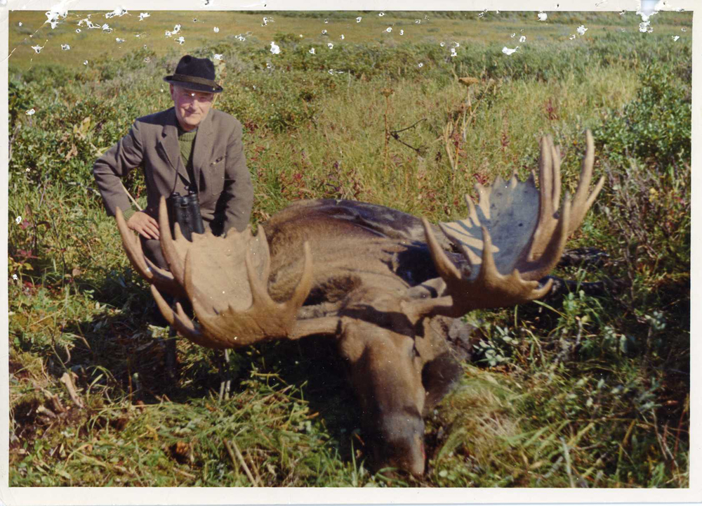 Location: Stikine River, BC At the time, Allen was a guide in Montana and Idaho, so he knew his way around the woods. He drove two days from Montana to reach Dease Lake in British Columbia to hunt goats. When the weather turned too nasty for goats, Allen and his guide shifted gears to moose. On the horseback ride in to moose camp, the guide saw an antler across a lake. He got the bull to stand, and started yelling in his loudest whisper, "Shoot! Shoot!" Allen took the 350-yard shot across the lake and connected. They took the bull into town, and it caused quite a stir. When a big moose is shot in small-town Canada, you might as well have the Stanley Cup on display. They left the bull and took off again for goat, but they got snowed out. A record-book moose would have to do. Boone & Crockett Club