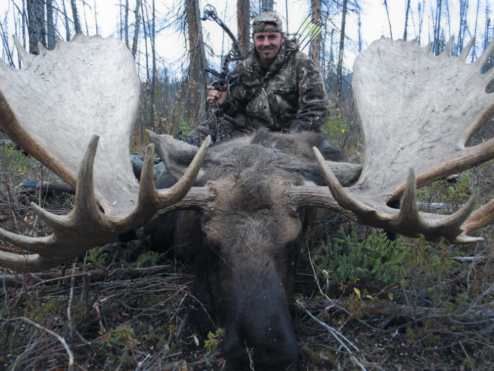 Location: Earn Lake, YT I first saw Real Langlois at SHOT Show. He is not a very big man and the Vegas working girls he'd hired to hand out flyers towered over him in their stilettos. My eyes eventually made it to his TV screen where the video of him arrowing this massive bull at three yards played over and over again (See the video here). And I had to watch it again and again. He calls himself "Homme Panache"—that's French for rack man. No, I don't make this stuff up. He's been a bowhunter for three decades, and he's good at what he does. As for this bull, Langlois was in a boat on a lake in the Yukon in September. He spotted something unusual on the shore, grunted and saw this massive bull. He snuck onto shore, got the wind in his favor, rattled and flashed his wooden paddles. The bull had two cows and started to come in. Langlois had not one, but two cameramen by his side. The bull was a decade old and 1,600 pounds. He came straight in to the grunts, flashing his behemoth rack right in the mens' faces. The bull turned when he was within spitting distance. In a move that takes a serious gut check, Langlois drew and fired at a mass of brown. Lucky for the crew, the bull bolted and bedded down one last time. Boone & Crockett Club
