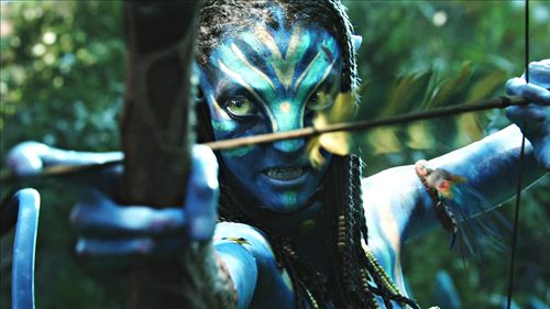The female lead in Avatar, Neytiri knows how to use a bow. She also knows how to ride an Ikran and royally irritate her parents by marrying a genetic mish mash who's actually a paraplegic in a wheelchair that she outweighs by a few hundred pounds and stands 10 feet taller than. Strange relationship choices aside, she's still pretty good with a bow. Clearly, they utilize a different style of shooting on planet Pandora.