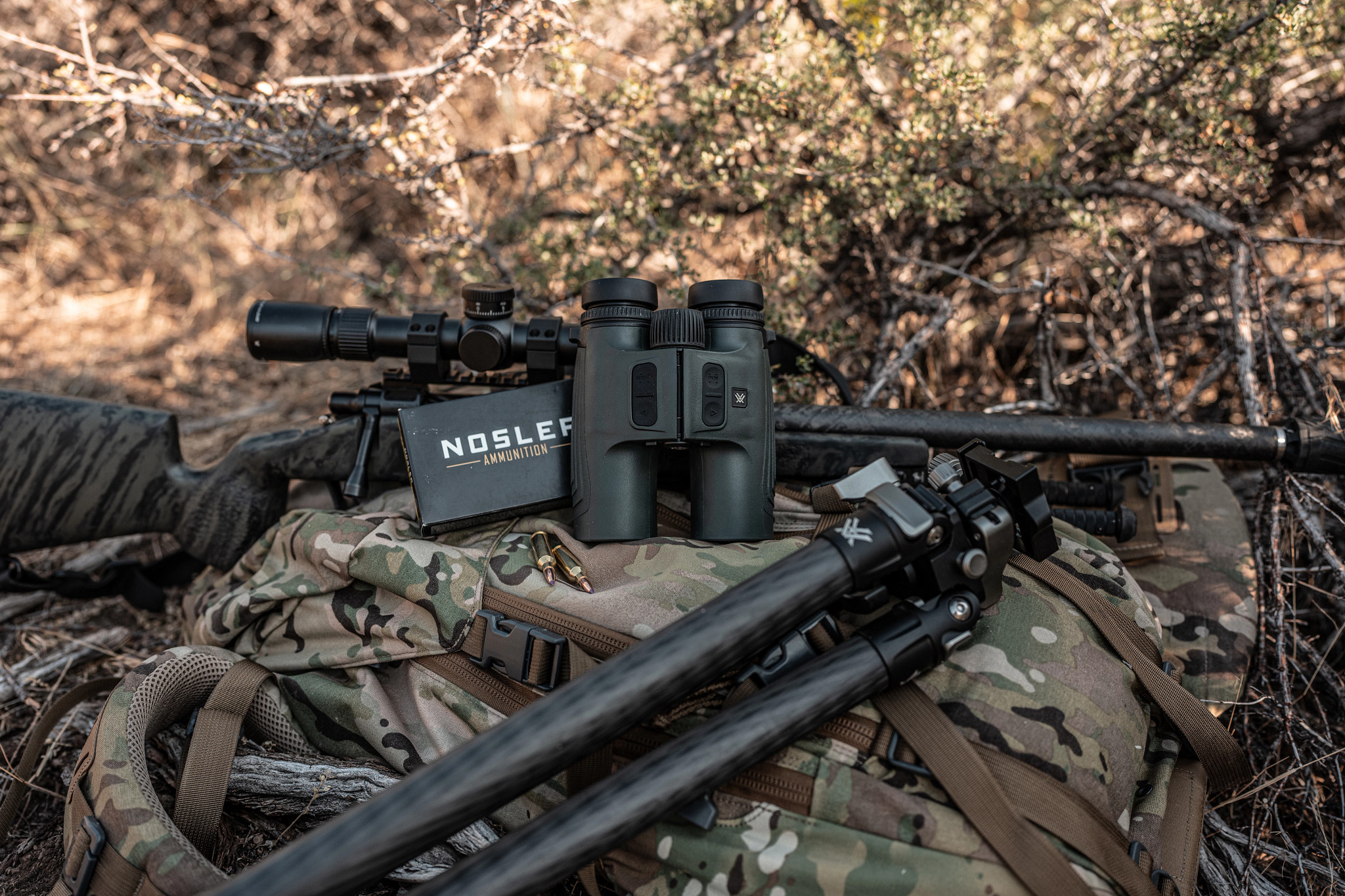 By combining the binocular’s ranging engine with the wind and weather information provided by Vortex’s new Ace® Weather Station and with the custom ballistics generated by the GeoBallistics app, shooters and hunters can range a target and receive real-time feedback in the binocular’s display about adjustments to holdover for elevation and holdoff for wind-adjusted aiming points.