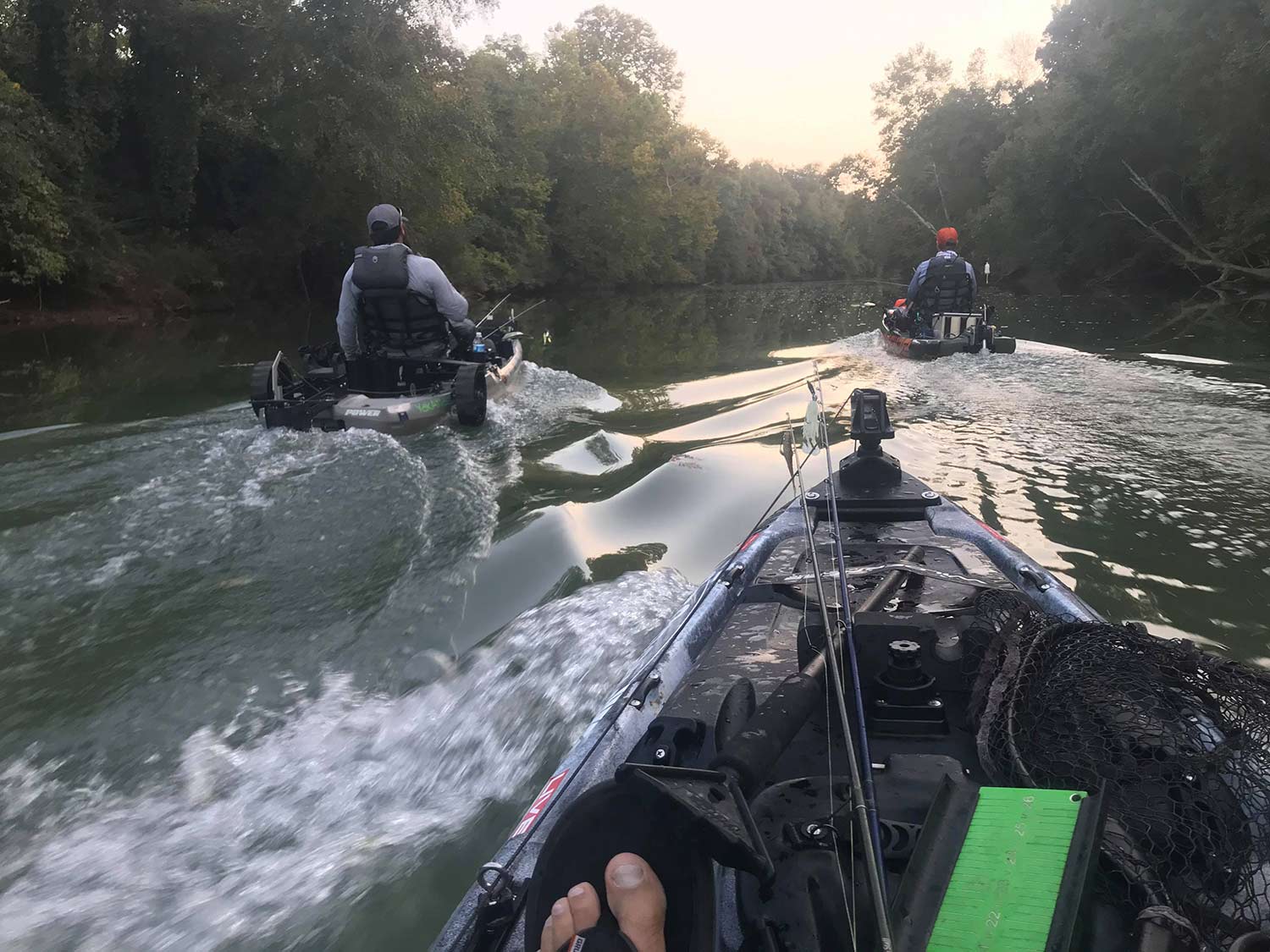 Both anglers point to the importance of weight distribution when adding a trolling motor to a paddle or pedal kayak. Milton says, “I move the seat as far back in the cockpit as I can.” This provides more room to stand and fish while controlling the motor with the foot pedal. When setting up a trolling motor on a kayak, both anglers suggest arranging the battery, motor and seat to dial in the boat’s balance.