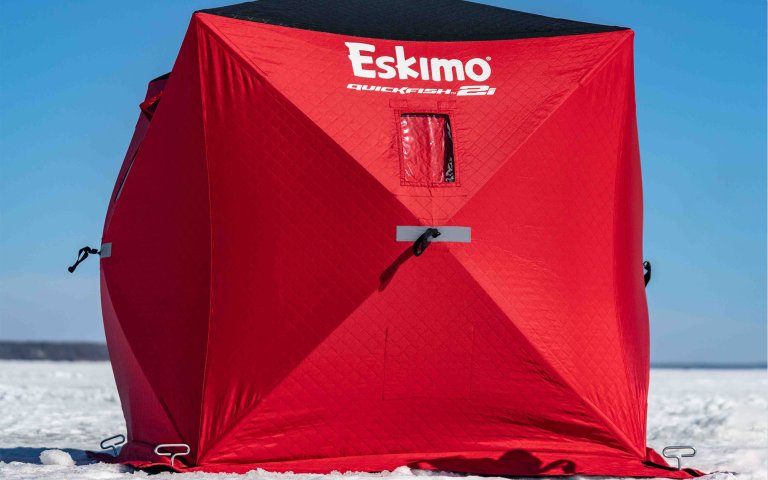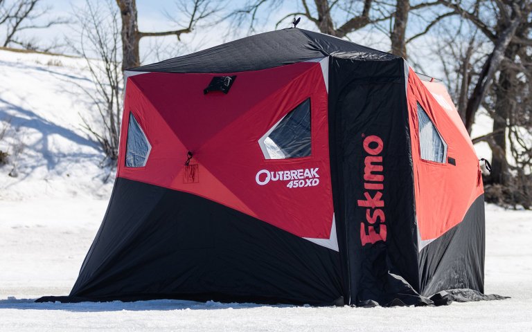 After a ton of testing, my pick for the best overall ice fishing shelter is the Eskimo Outbreak 450XD. If I had to own just one fish house, this would be it. At 75 square feet, it’s the perfect choice for a couple of fishing buddies and a couple of kids.