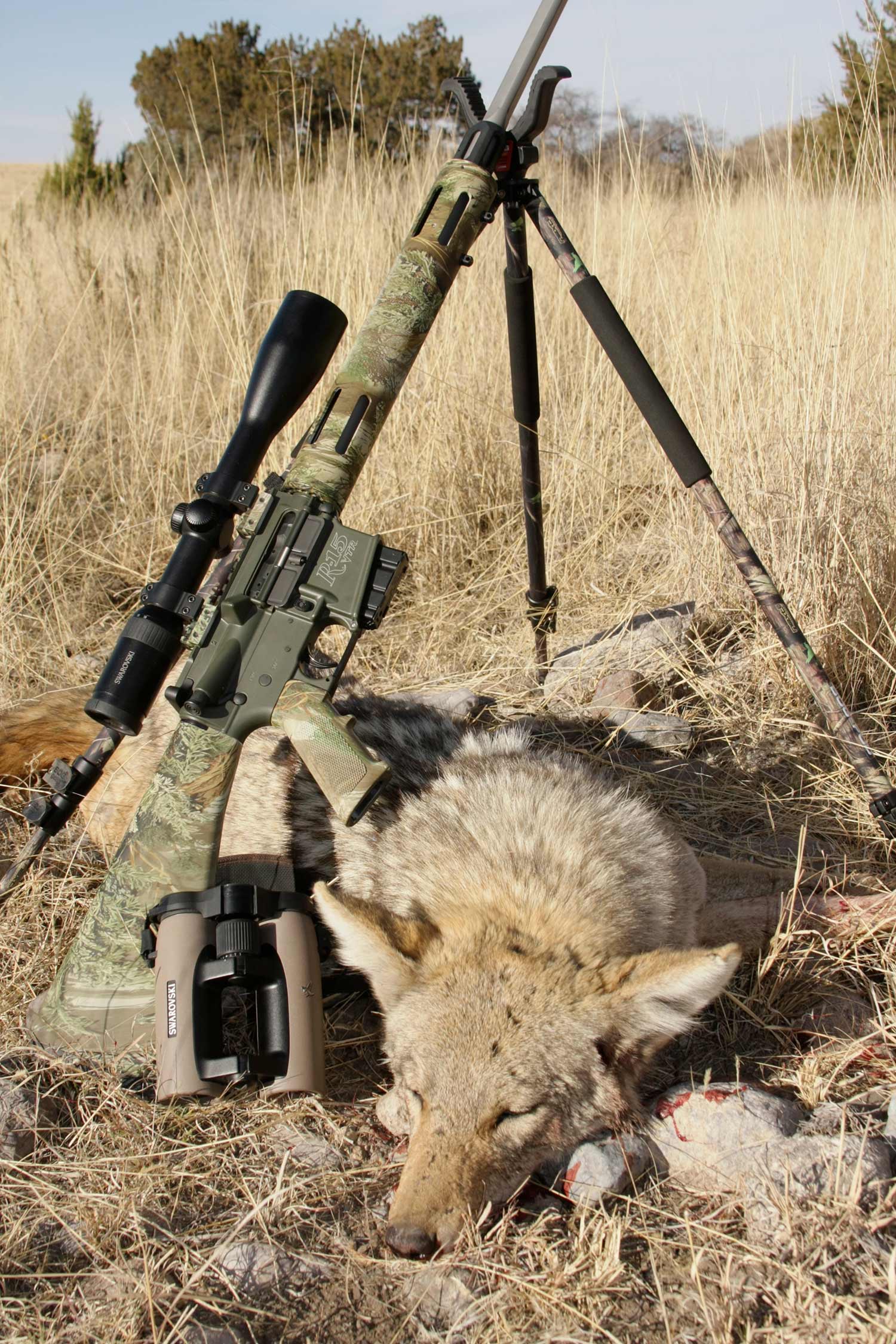 The potential for multiple shots on coyotes is driving the current trend toward autoloaders. During the peak of the fur market in the 1970s coyote hunters were increasingly looking to the Ruger Ranch Rifle, a semi-auto in .223 Rem. These days the versatile AR-style semi-autos are quite popular and deadly accurate. There’s nothing wrong with Browning’s BAR or BLR in .243 Win. either. Choose whatever action-style you like, but do think about quick, smooth follow up shots. Here we go.
