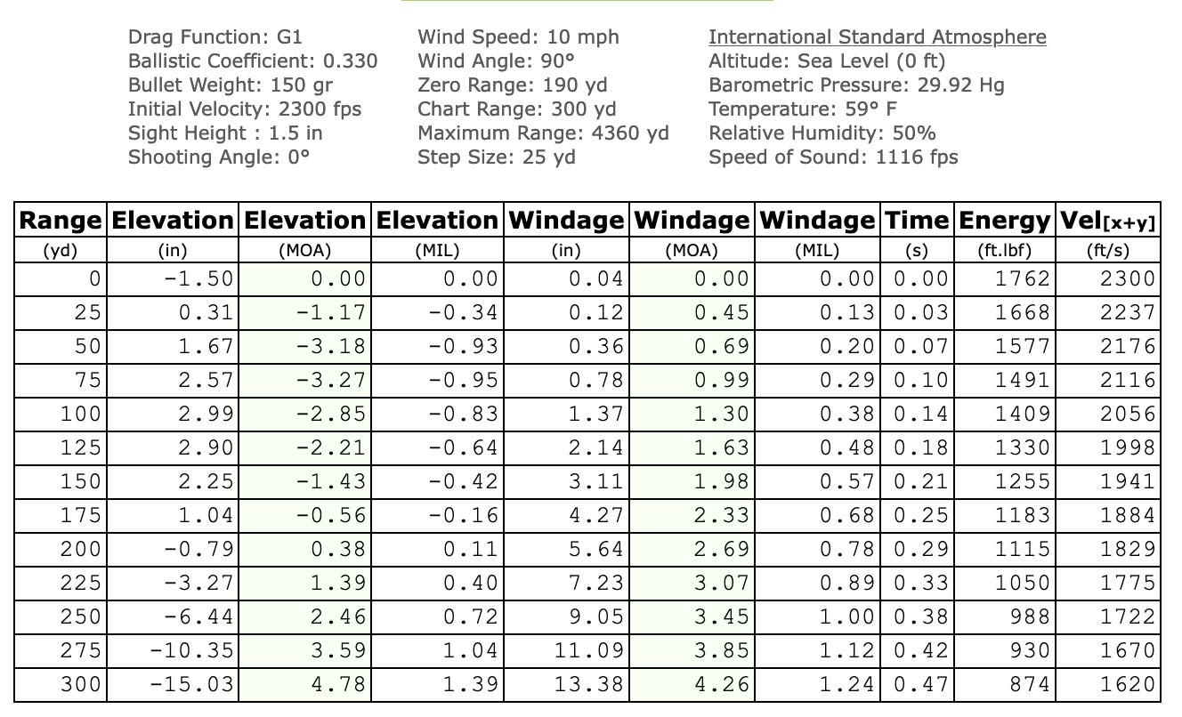 Whoopee. We gain almost nothing in the drop column. But look at that wind deflection column. It’s an impressive 2.5-inch reduction in deflection in a 10 mph crosswind.