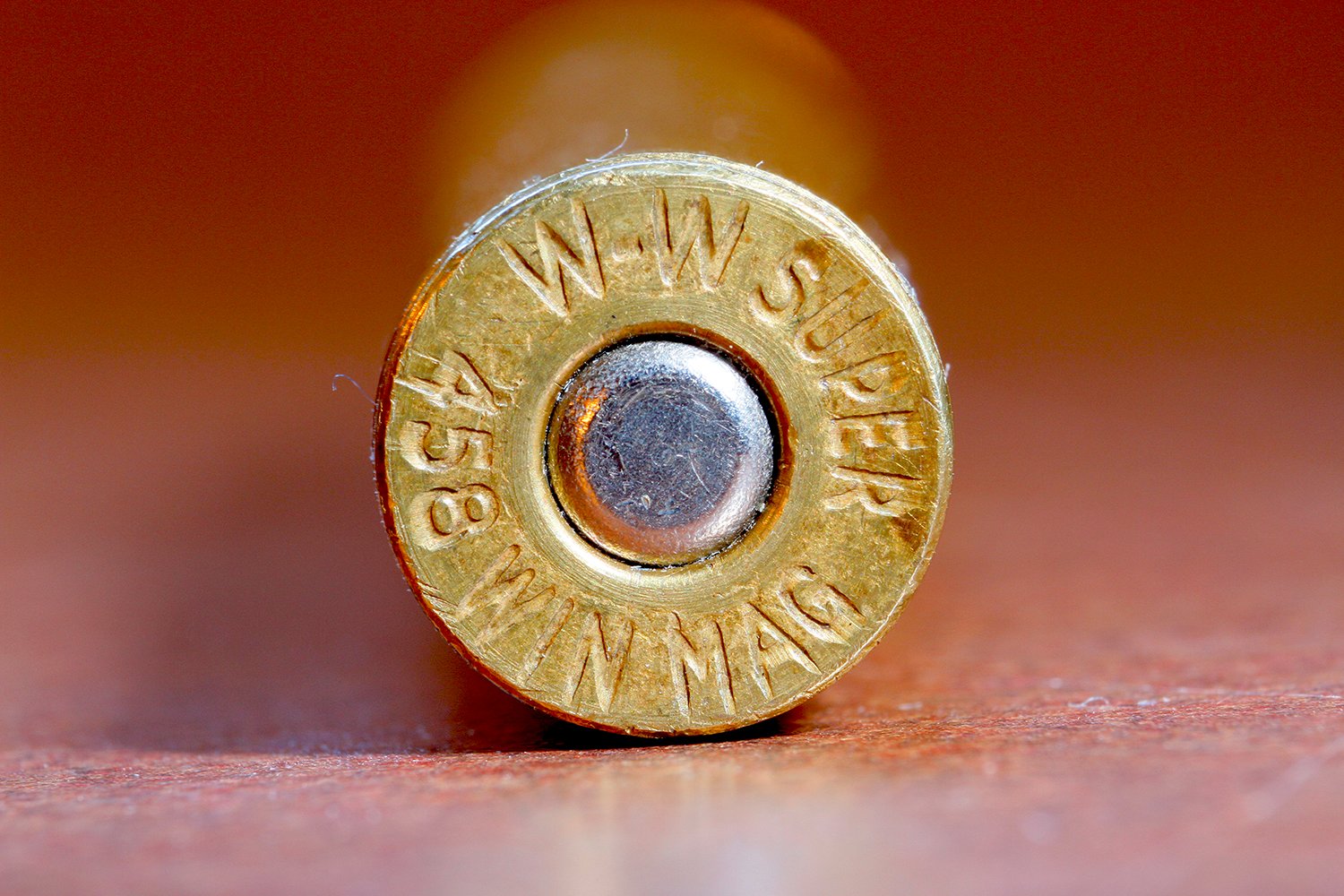 Like the .416 Remington Magnum, the .458 Win. Mag. springs from the .375 H&H. But it arose way back in 1956 when most truly large bore, dangerous game rifles were chambered 450 or 470 Nitro Express or larger in big, magnum double rifles few Americans could afford. Winchester engineers wisely shortened the magnum-length (3.6”) 375 H&H case to the 30-06 length of 3.34”. This meant it could be chambered in standard Model 70 rifles. Winner winner chicken dinner. Affordable, readily available rifles and ammo soon inspired not only American sportsmen, but African PHs to grab this big, new .45.