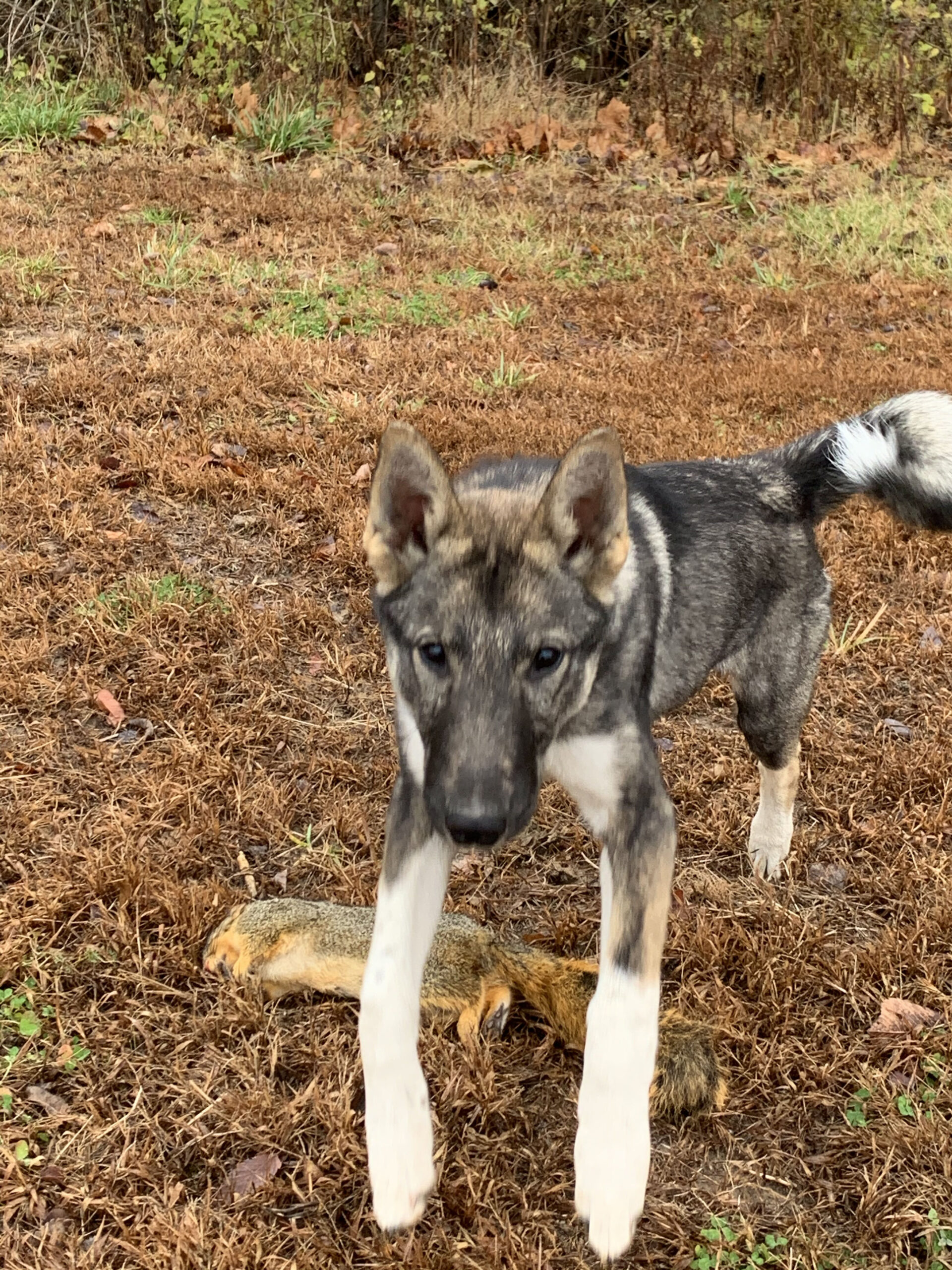 I also wanted a dog that could hunt other game, and Laikas will hunt virtually anything you kill in front of them. I doubt he will be a great duck dog. But I can still take him duck hunting and not worry that he will be in the way or get into trouble. Plus, he howls when we all blow our goose calls, like he is trying to help us trick geese into the spread, and that’s priceless in and of itself. My hope is to get him retrieving doves, and running rabbits. As he gets older, I want to hunt him on hogs with buddies in Oklahoma, run down coyotes in Kansas, and get him to track all manner of game.