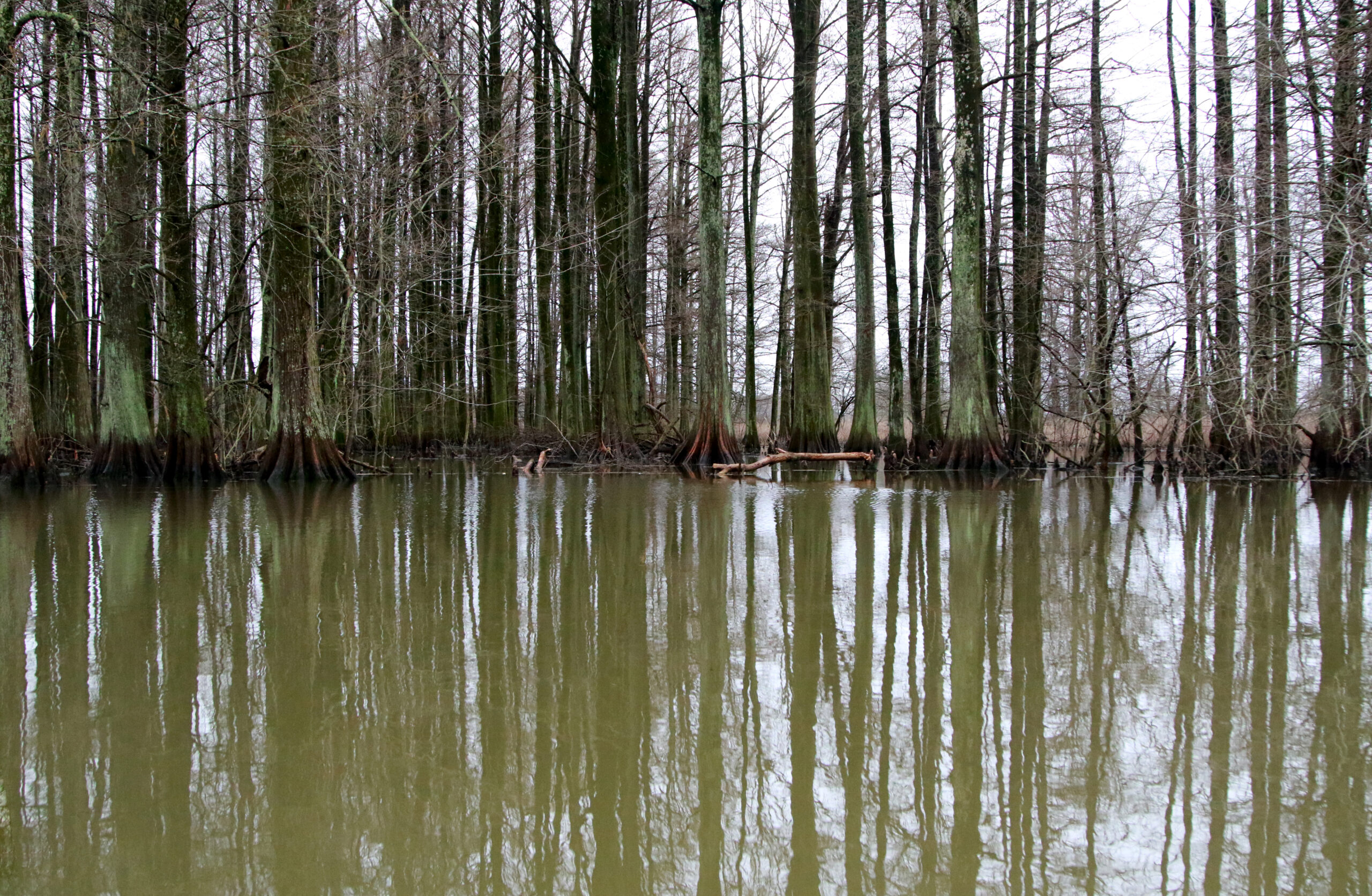 Reelfoot is a flooded forest, shallow and riddled with cypress stumps. As a result, the lake is an outdoorsman’s paradise of jon boats ferrying bass and crappie anglers in the summer and duck hunters in the winter. Typically, it’s only safe for boaters to open the throttle when they’re navigating the dredged channels that connect the tangles of cypress swamps with open water. Duck-stealing bald eagles and salt-white pelicans migrate through, and so do the birders who follow them. It’s a critical stopover and wintering area, and January populations can also hit upwards of 50,000 geese and 150,000 mallards.