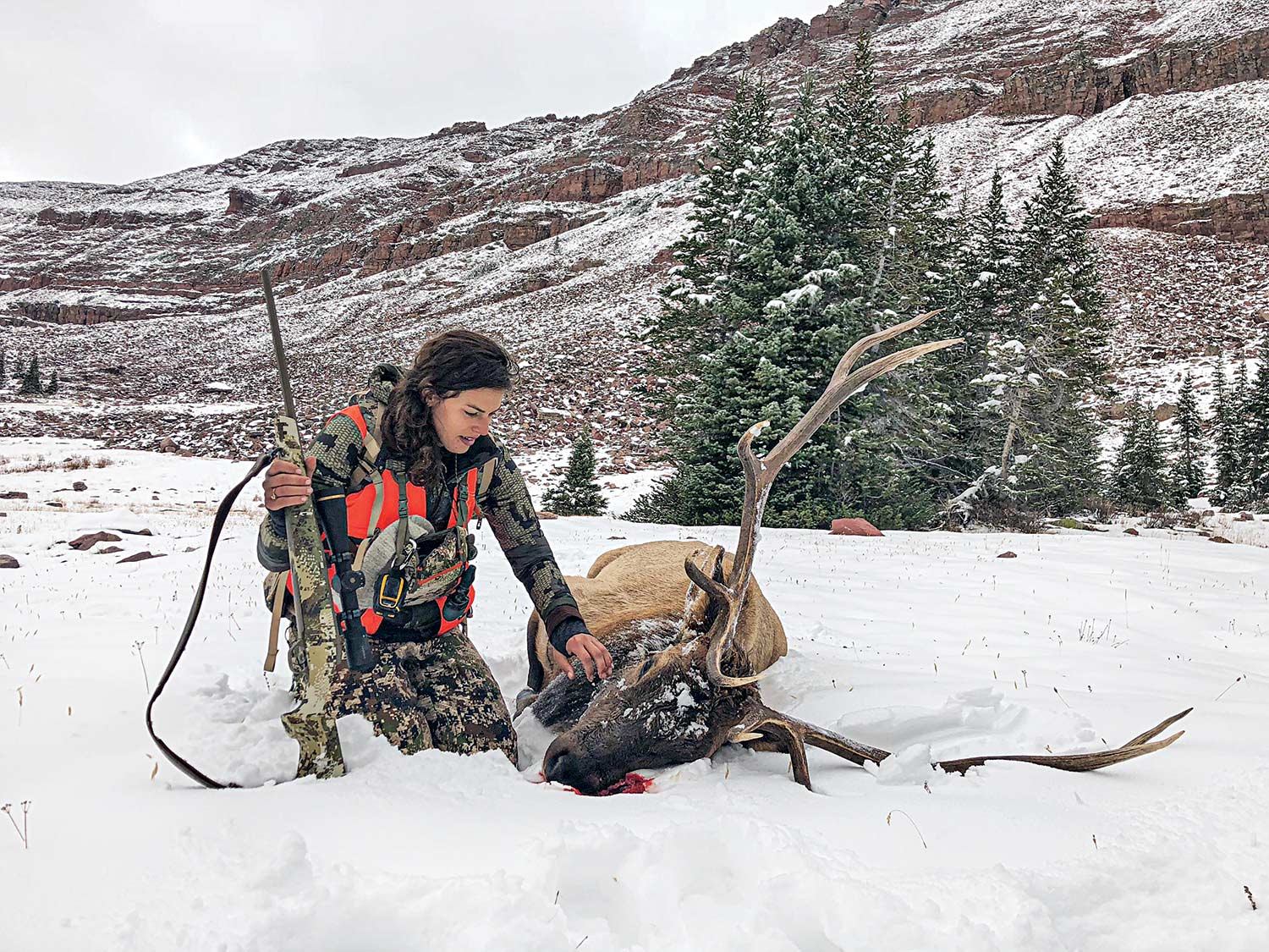 It’s growing late as the two of us clamber up a steep boulder field. The snow has stopped, and Natalie wears an unabashed grin as we scramble the last few yards. I’m impressed. I never would have invited her if I didn’t think she could handle the hardship of this hunt, but I’m still pleased to be proven right.