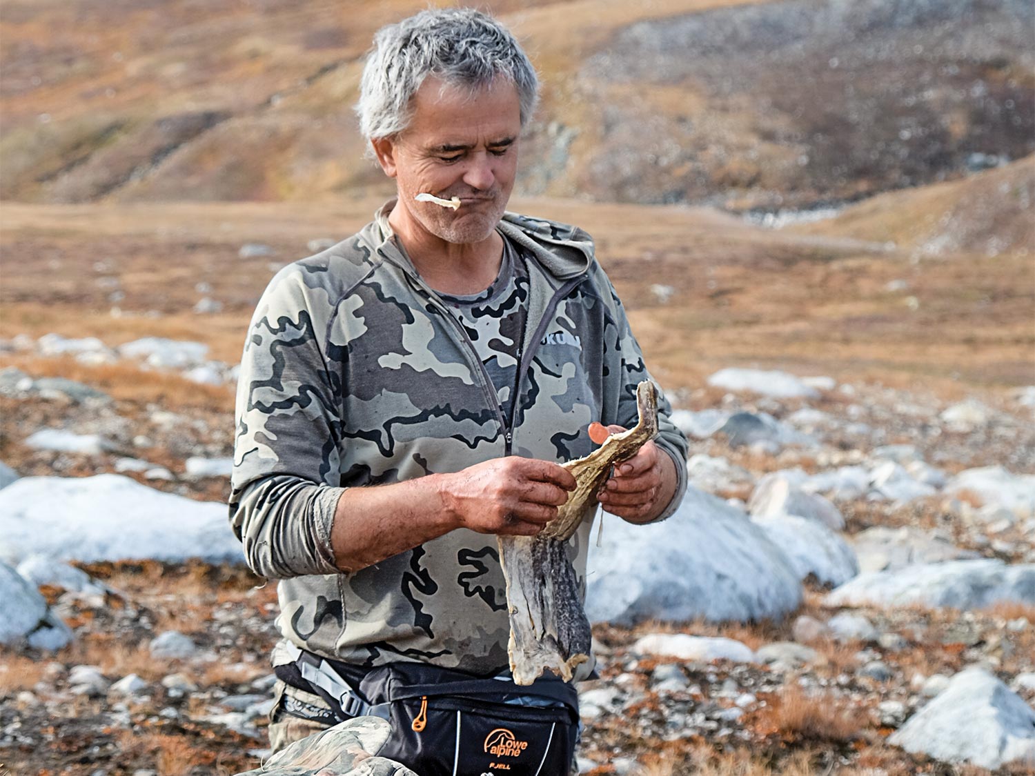In a lull between hunts, we had our own chance to gather bounty from the water, first by jigging hefty cod out of the ice-cold fjords, and later by casting bright spinners in the plunge pools of waterfalls for arctic char. The latter have mostly finished spawning and moved back to the salt water for the winter, but the few hangers-on in the streams are ravenous and hit my hardware like fish twice their size.