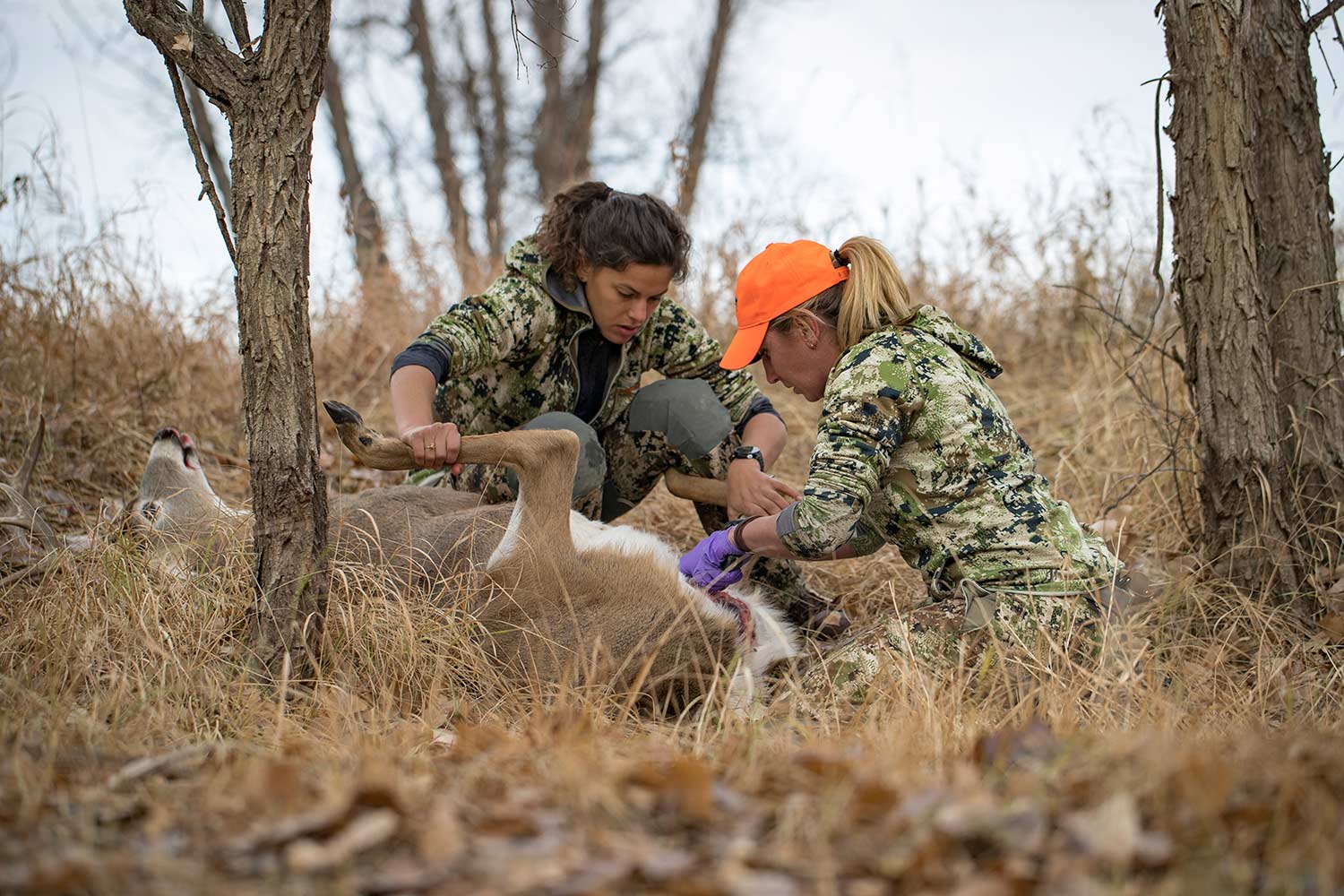 Field-dressing game is important for quickly cooling the meat. If possible, enlist a buddy to help you gut your deer or, at the very least, hold a leg. Dustin Lutt / Rockhouse Motion