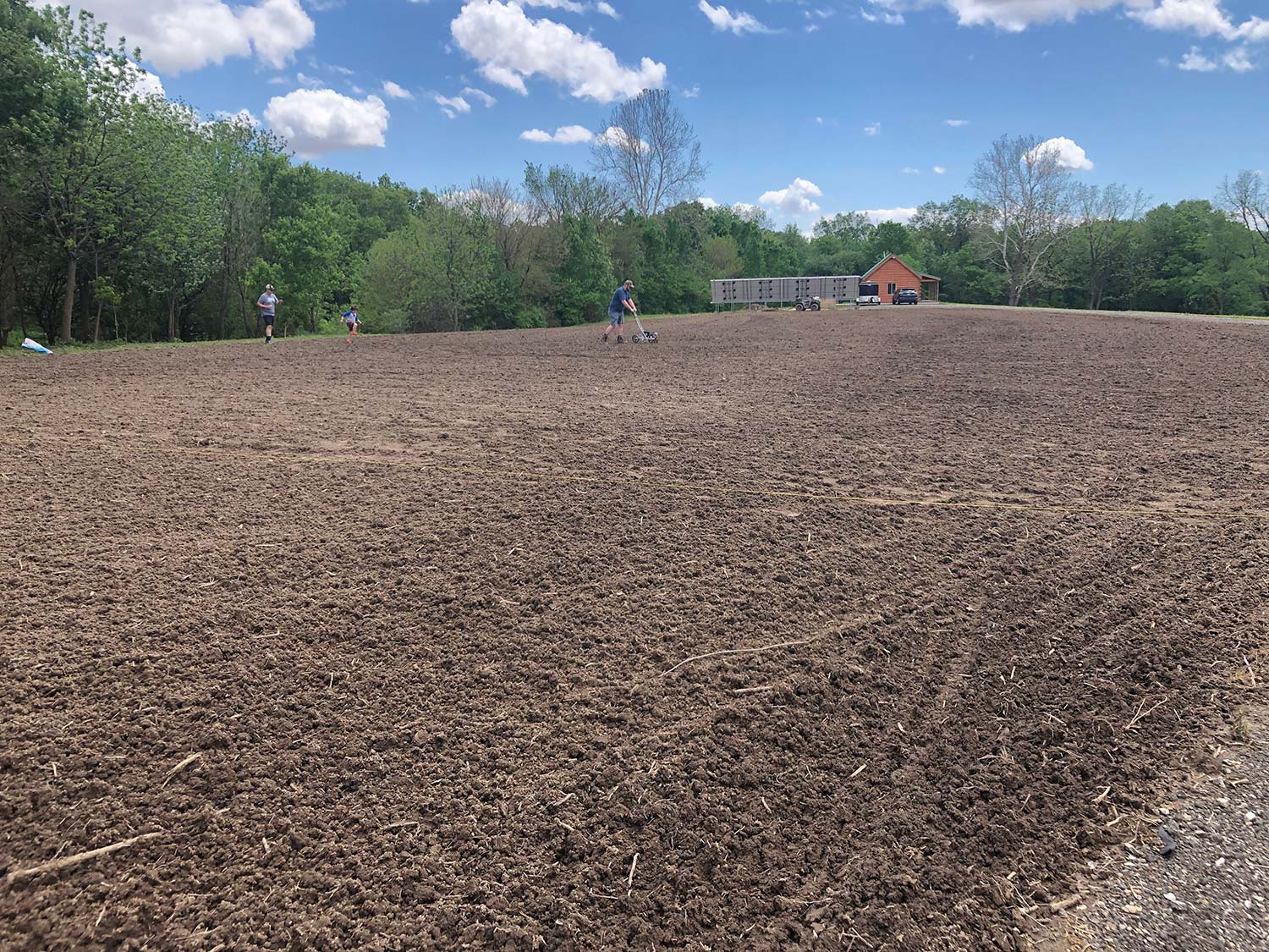 If you broadcast, buy a shoulder spreader and walk the field turning the hand crank until the seed is gone. You will have to cover the seed somehow, which you can do with a harrow or a piece of chain-link fence hooked to the back of an ATV or tractor. (If you ever played little league or have gone to a pro baseball game, it’s the same tool used to drag the field.)