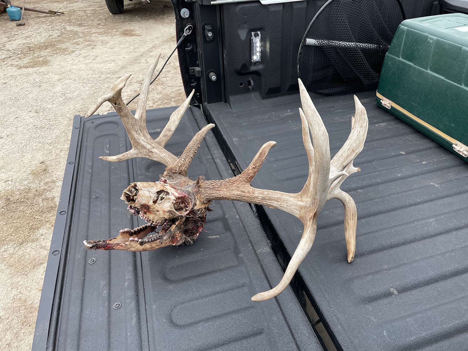 On Sunday, January 24, he eased into the property. Kline hoped for the best, but expected the worst. But once in the area, he found the buck within minutes. The massive deer laid dead only 50 yards from the property line. The carcass was picked over by scavengers so there was no way to tell what had actually killed the buck. Having disappeared from cameras during the heart of hunting season, it’s possible that another hunter wounded Herman. But, it’s also possible that the old buck succumbed to the stresses of the rut, possibly getting wounded by another buck and going down to infection or coyotes or both.