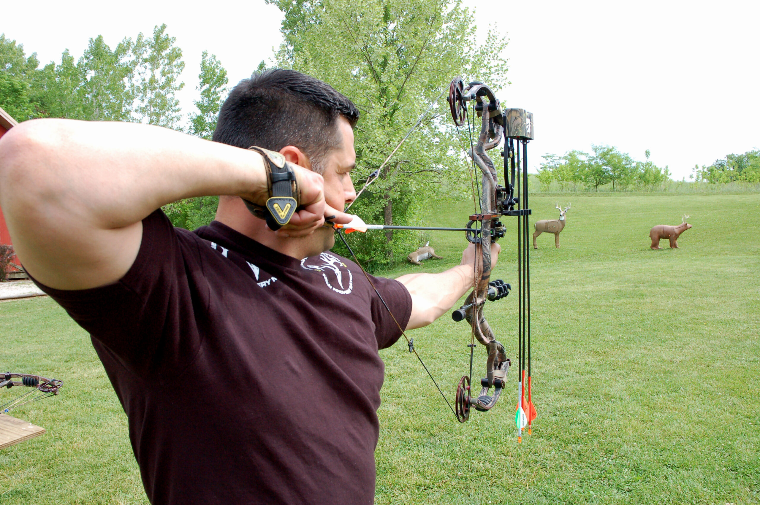 “By that time, about 95 percent of the time, you can get your arrows to tune. If they don’t, take those bad arrows, strip the vanes, and refletch in-between the original vanes. Every arrow has a stiff line in it—called the spine line. When the bow is shot, that spine line prevents the arrow from oscillating as much in that direction, so if the spine line is at 6 o’clock, it won’t flex as far as the 12 o’clock location. If you grab another arrow with the spine line in a different location, it will react differently. As you’re rotating the arrow, you’re trying to find the spine line.”