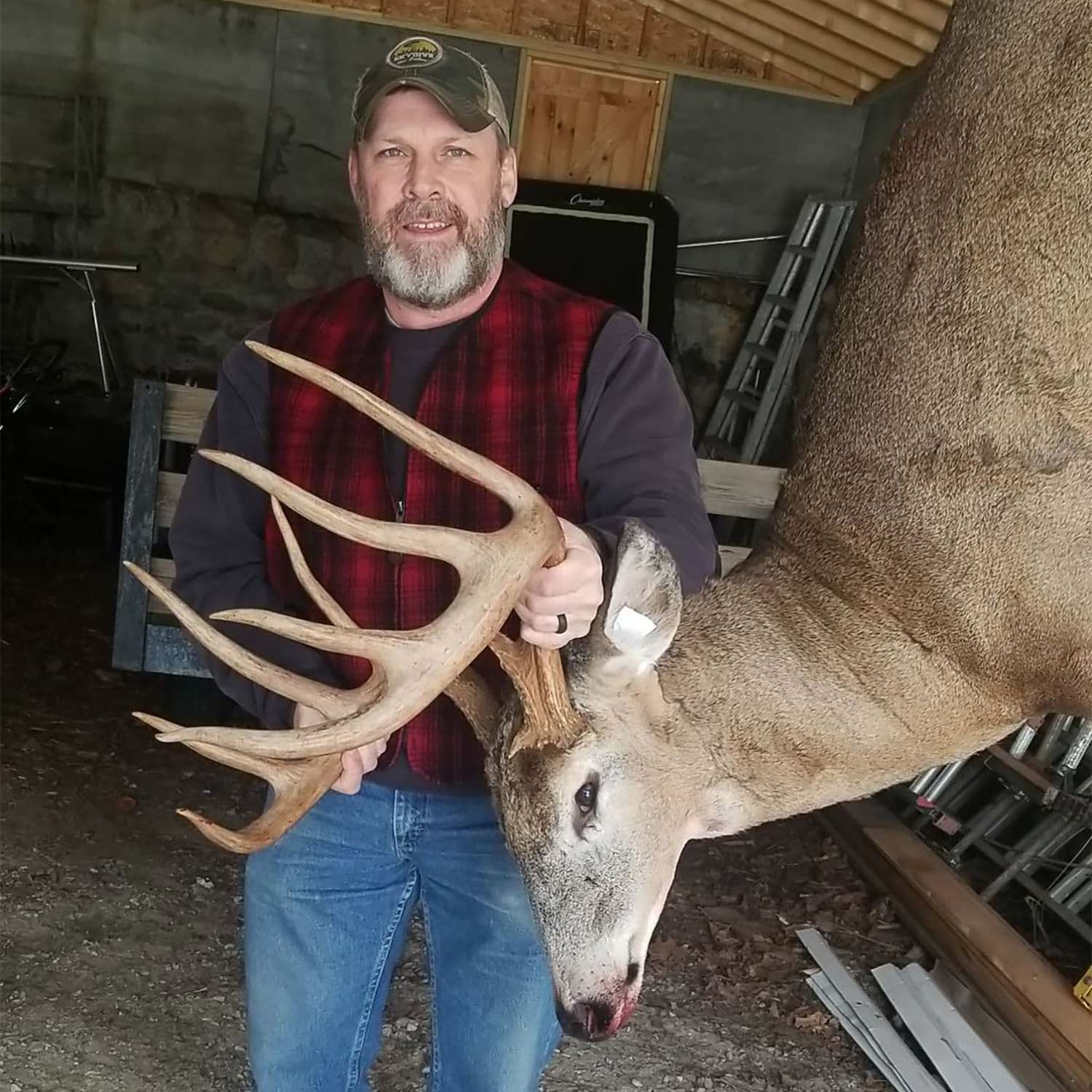 The doubt every hunter experiences after a shot took over but Evans needn’t have worried. He found the buck a short distance into the woods and was struck by its size. An experienced woodsman with many big bucks in his past he frankly admitted it was the most excited he’s ever been. “I couldn’t form complete sentences for a day,” he said. And this one was a double whammy. Not only did it weigh in at 270 pounds, it sported a massive record book rack.