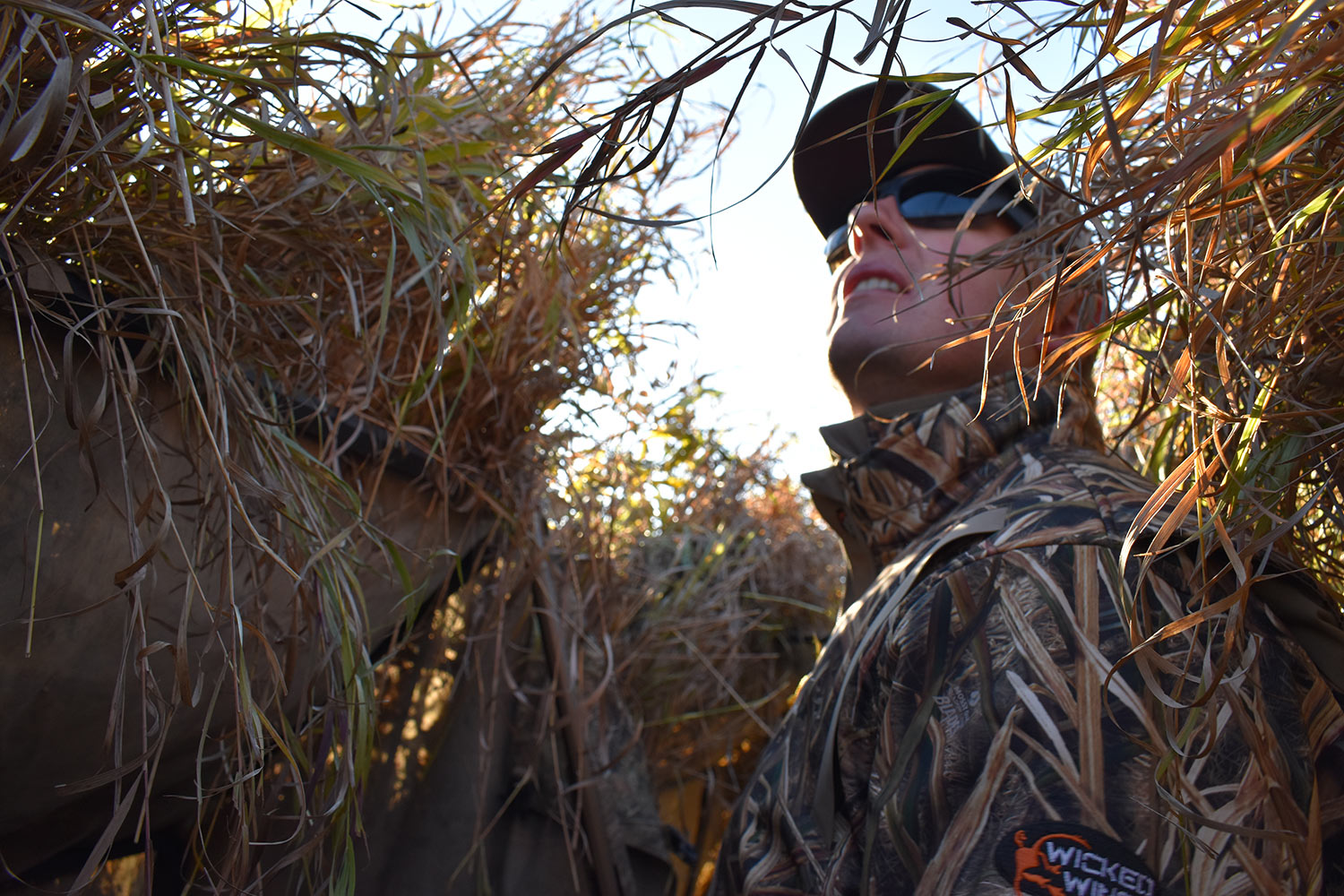 Most corn and bean fields are not going to be cut this time of year, but you might find a harvested sweet corn field, which is one of the best options out there. A buddy of mine in Minnesota has a deal with a couple sweet corn farmers to leave some standing crop in the field through the end of the early season. It’s an awesome hide, because you can just sit on a five-gallon bucket among the stalks. Sometimes you can find standing corn next to a cut wheat field or sod farm and that’s an ideal location because it makes the hide so easy. If it’s not too wet, more fields will get cut as the season rambles along. And the birds will find those places, so you have to stay on them.