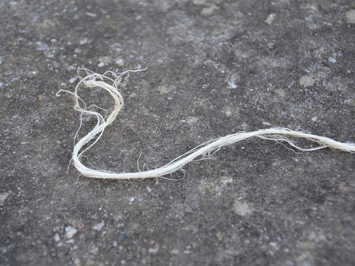 With a hammer or a rounded river cobble, you can unlock the strength and flexibility of sinew by pounding it with a hard, smooth object. This object shouldn’t have a gritty texture or any rough edges, as they will cut into the fibers. The goal of pounding with a hammer or round stone is to simply separate the fibers into strands. Once pounded and peeled apart, they look something like dental floss. These fibers can be woven into thick, flexible cordage or used as individual threads for small tasks and finer work.