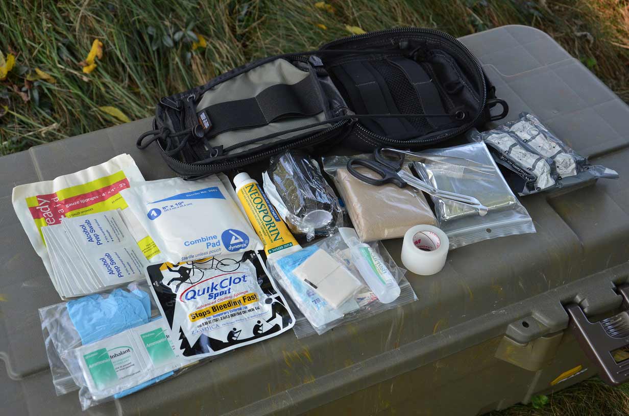 You can build your own first aid kit piece by piece or buy one fully stocked. Whichever route you go, you’ll want to have the right supplies to deal with bleeding wounds in the field. Here’s a quick rundown of your most vital supplies: