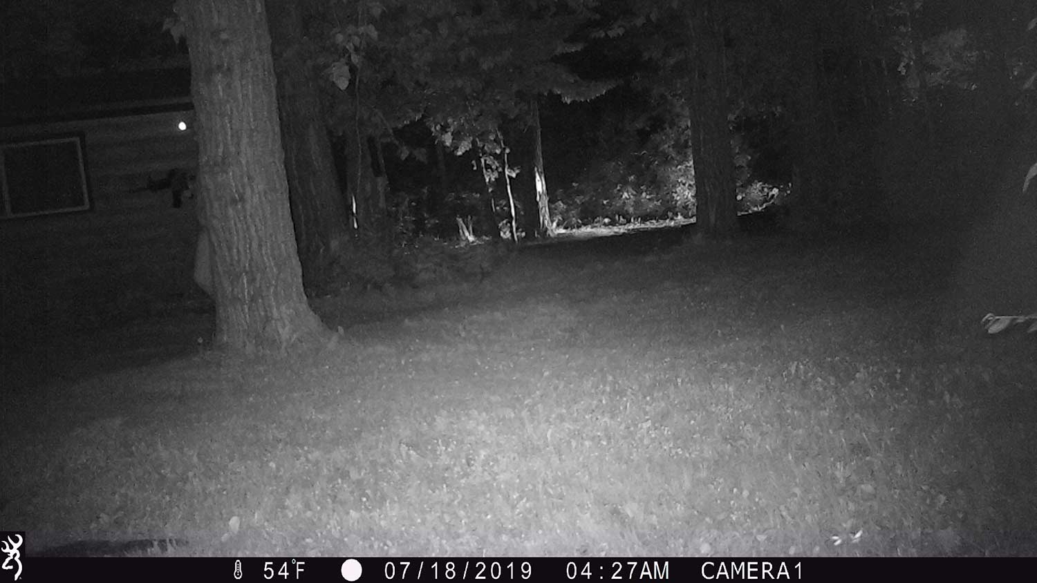 We know from much trial and error that the only cellular phone signal available at the cabin comes from Verizon. (We do thankfully have satellite Internet there.) But, that one bar of service is provided by a tower across the border in Canada. A whole lot of Googling suggested that Moultrie made a camera that should work, but at $300, I didn’t want to spend a bunch of money buying several without knowing for sure. So, I bought a single camera on Amazon, familiarized myself with it at home, then brought it up to the cabin on our next visit. Through some miracle, the XV-7000i actually says it has five full bars of service there, has no problem transmitting data through Canada, and is able to upload any images it captures to Moultrie’s cloud server in real time. Strapped to a tree above one of the perimeter alarms, it makes images available on the accompanying smartphone app by the time I’m able to pick up my phone. And all for $14-a-month with no contract.