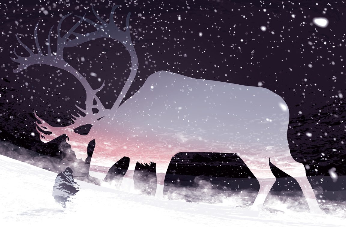 Curled in the fetal position, the man cannot feel or move his two bare hands, but the rigid muscles in his fingers hold fast, gripping the tarp in bunches and holding it tight to his body. He is dressed, like the hunters who came before him, in traditional clothing made of bearded seal skins and caribou hides. He’s lying on top of a plastic sled with his knees drawn to his stomach, and except for the subtle rising and falling of his chest, he hasn’t moved in days.
