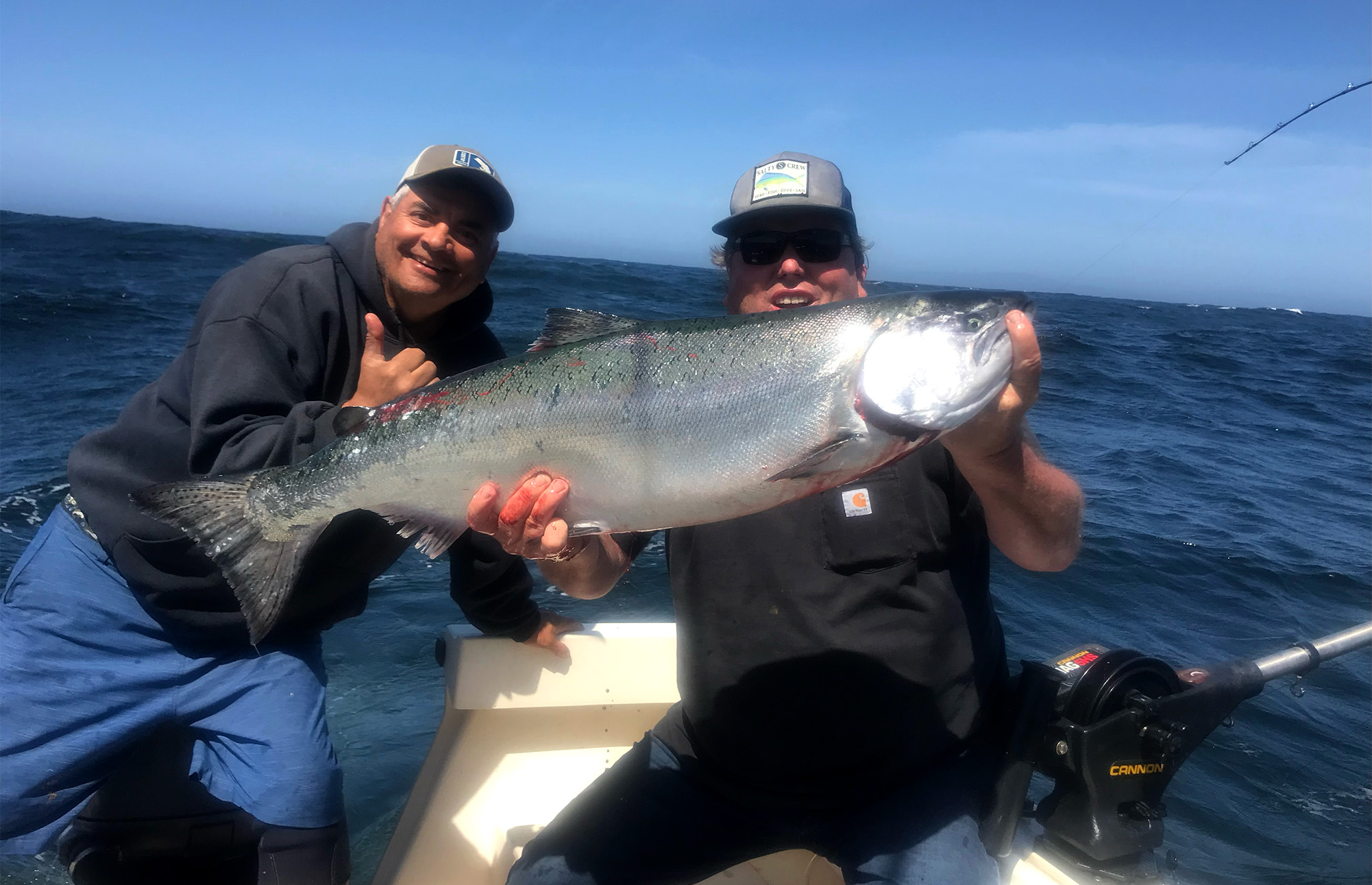 Doug Armstrong, Mike Arujo, and Bill Weilbacher left Moss Landing Harbor in Arujo’s 21-foot boat around 8 a.m. on April 7. They ran six to eight miles out into the bay and started trolling for king salmon using downriggers and frozen anchovies for bait. The limit for ocean kings in California is two per angler, and Weilbacher says they caught their first five fish in short order.