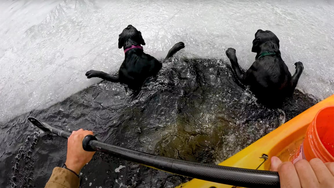 “Anytime the [dogs] tried to pull themselves up, the ice would break off,” Lalonde tells Outdoor Life. “It was just too slippery, and they couldn’t get their front paws up to lift themselves out of the water … but I don’t know if there’s any dog that would be able to do that.