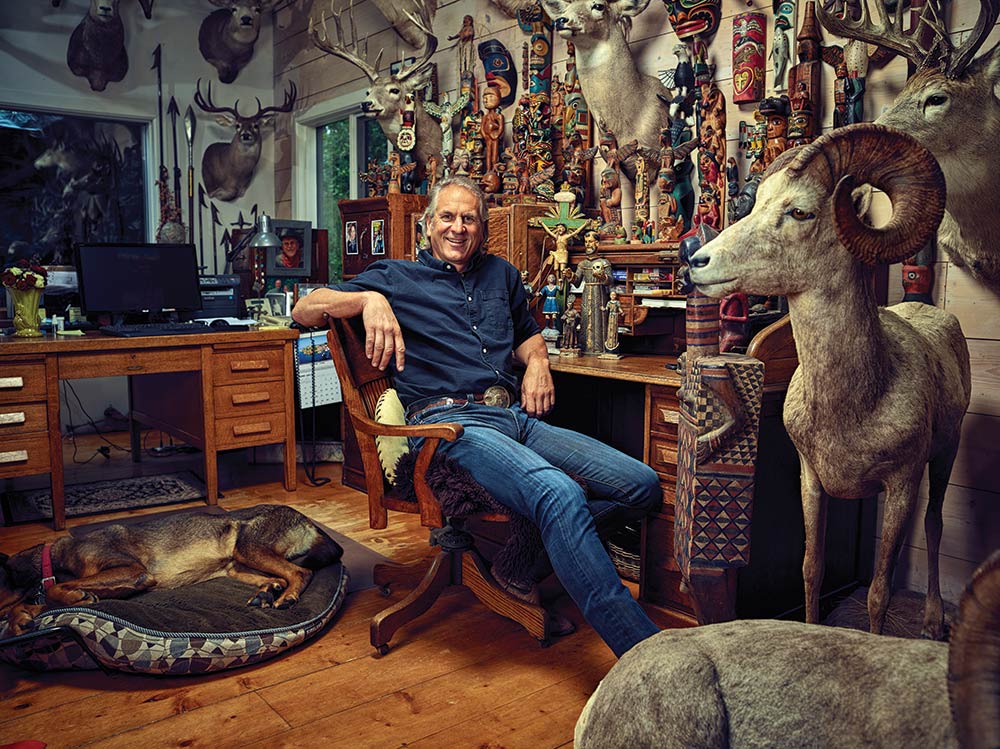It’s past midnight by the time we drive through the security gate and park alongside the former elementary school. Jim Shockey hops out of the pickup, unlocks a door that leads into a hallway, and flicks on the lights to reveal room after room of mounted game trophies and cultural artifacts gathered over a lifetime of hunting around the world.A few dozen moose and caribou racks adorn what used to be the gymnasium. A side room contains the African species, including an elephant, a lion, and a Cape buffalo skull with a bullet hole punched through it. (Shockey had been visiting the site where a buffalo killed one of his friends when, on the ride out, an aggressive bull charged the vehicle. Shockey killed it at point-blank range as it rammed the front bumper.) Another room holds full-body sheep and goat mounts from the far side of the world—argali from the Himalayas, ibex from Mongolia, blue sheep from China, and red sheep from Iran.I’m captivated by the animals, but Shockey wants to talk about the artifacts. He shows me pottery from Peru, rugs from Kazakhstan, and knives from Maasai warriors. Shockey traded for or purchased hundreds of these mementos during his travels. He bought the abandoned school (which his kids, Branlin and Eva, once attended) to convert it into a sort of natural history museum—and shrine to his career—that will one day be open to the public.