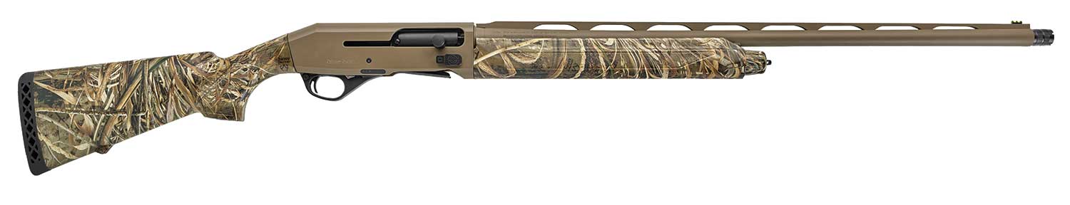 Hunter’s unfamiliar with Retay shotguns may want to check out the company’s Masai Mara line of semi-autos. They feature a patented Inertia Plus Locking System that ensures the rotating bolt head locks into place every time, eliminating that dreaded “click” inertia guns are notorious for. Also nice is the push-button trigger group and beefed up ejector, both of which are easily removed for cleaning. Waterfowlers will be most interested in the super magnum 12-gauge Masai Mara 3.5. It has an oversized bolt release button and bolt handle, Cerakote-coated receiver and barrel, and a camo synthetic stock and forearm. Finish options include bronze or earth Cerakote with Bottomland or Timber camo, or OD green Cerakote/Max-5 camo. 26-, 28-, or 30-inch barrels come with a Truglo front sight and five chokes: skeet, IC, modified, IM, and full.