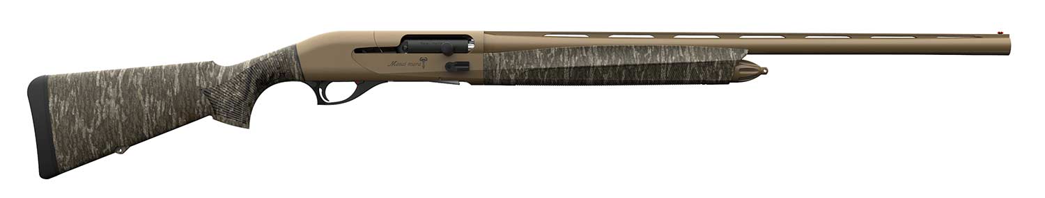 Remington’s new V3 Waterfowl Pro features an oversized bolt handle and bolt release button and wider loading port, all of which make operation with gloves easier. The barrel and receiver have received a tough Cerakote finish, while the synthetic stock and forearm are camouflaged. Three options are offered: burnt bronze Cerakote with either Realtree Max-5 or Mossy Oak Shadow Grass Blades camo, and Patriot brown Cerakote with Realtree Timber camo. All come with 28-inch barrels, a HiViz front sight and steel mid-bead, and three choke tubes: IC, modified, and full. This 3-inch, 12-gauge autoloader is powered by the soft-shooting VersaPort gas system which reliably cycles both 2 ¾- and 3-inch shells. Remington’s excellent and ultra-soft SuperCell recoil pad helps absorb the kick from those heavy, magnum duck and goose loads.