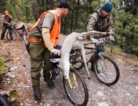 Then there’s the low-tech way. Just throw the deer on your bike and wheel him out.