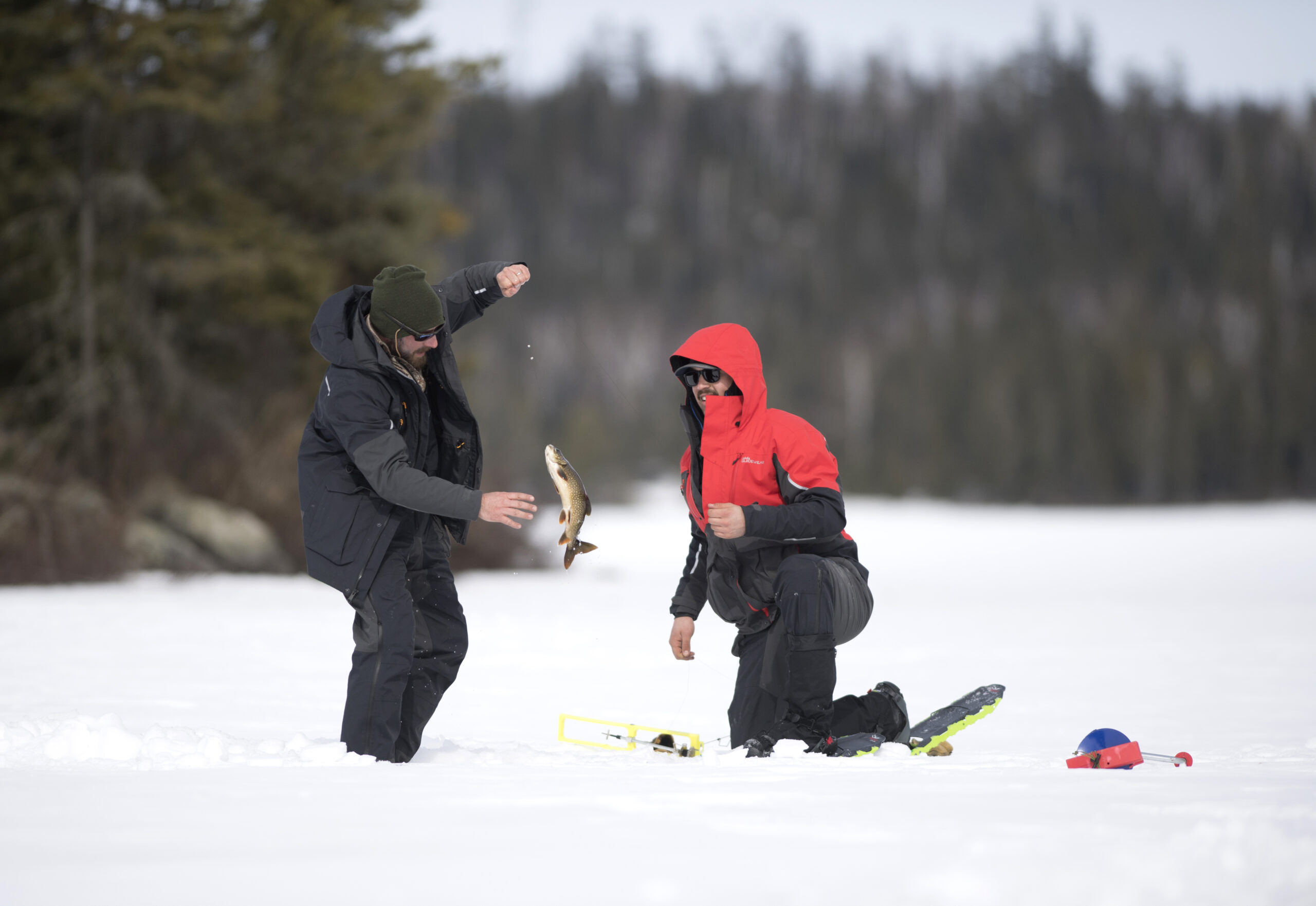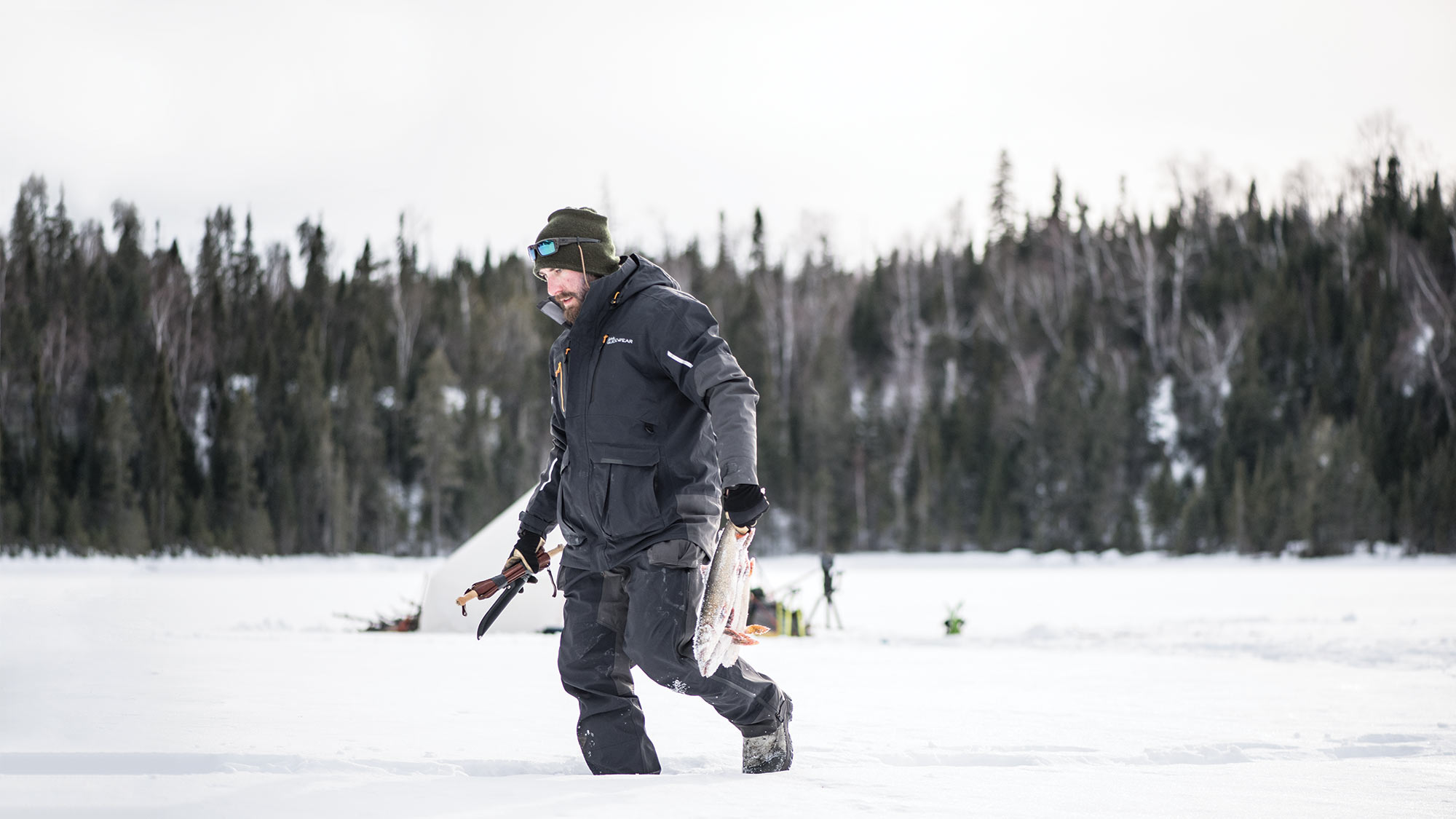 I’m collecting more firewood on the last afternoon when I spot a bundled figure sprinting toward Kjos, and another right behind. It’s too far to hear what they’re shouting, but there’s only one reason everyone would be running like that: Kjos just caught the pike. Sticks fall from my arms as I start to run too.